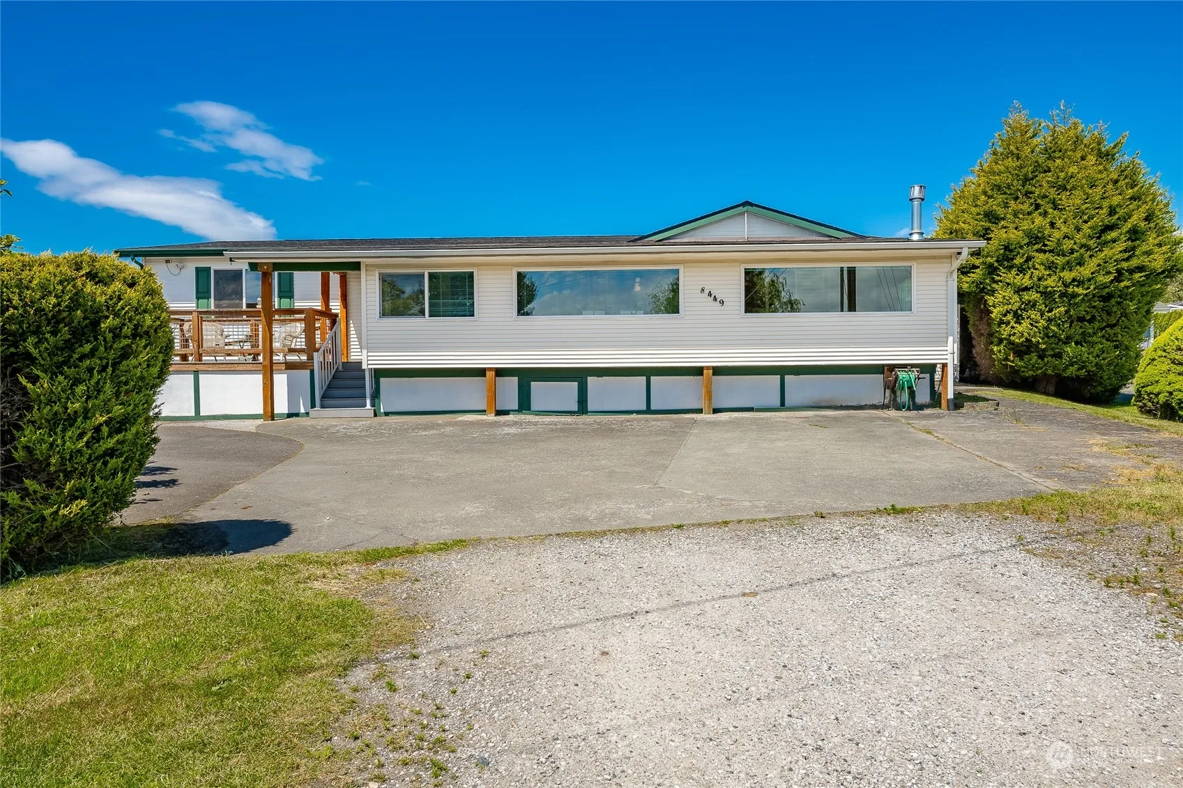 Opportunity in Birch Bay, hard to find combined double lots. Estate Sale on 1/3rd of an acre. Built in 1998. 1976 sq. ft. with an additional 1080 sq. ft. shop with mezzanine and additional carport. 3 bedrooms, 1.75 baths, open floor plan with no carpet in the main living areas. Vaulted ceilings, skylights, gas fireplaces & ceiling fans. Spacious kitchen with island seating, tons of cabinets. Separate dining room area all open to the great room. Primary with en-suite. All appliances stay including the washer and dryer. There are 3 separate RV storage areas with two having RV plugs. The site offers privacy at the end of a Cul-da-sac. Backyards have privacy hedges on one side and fencing. Extra outbuilding, quiet here. Sold as is. See it today