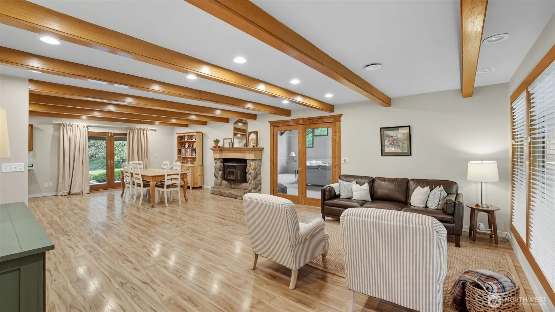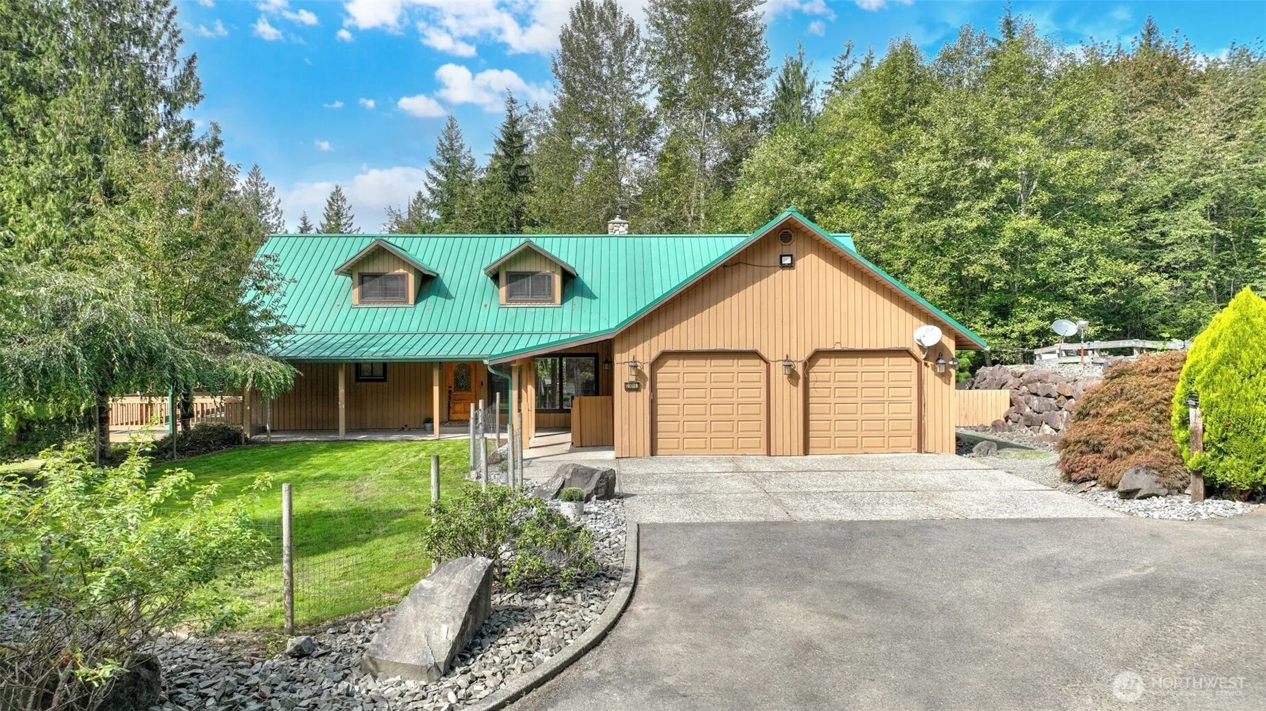 Experience Northwest living at its best in this private custom mountain lodge style home on 1.43 acres. Gather in the great room under soaring cathedral ceilings by the river rock fireplace, or retreat to the main floor primary suite. A finished lower level offers space for play, work, guests, this attached ADU can provide additional income or a perfect multigenerational living space. Enjoy evenings on the wrap-around porch, a garden pond, sports court & chicken coop. Room for every lifestyle—with space to grow, relax & create memories.
