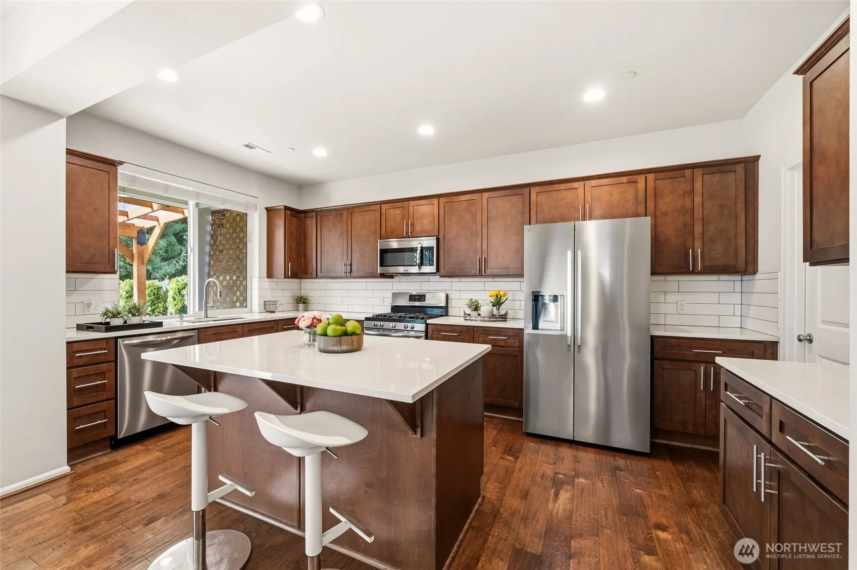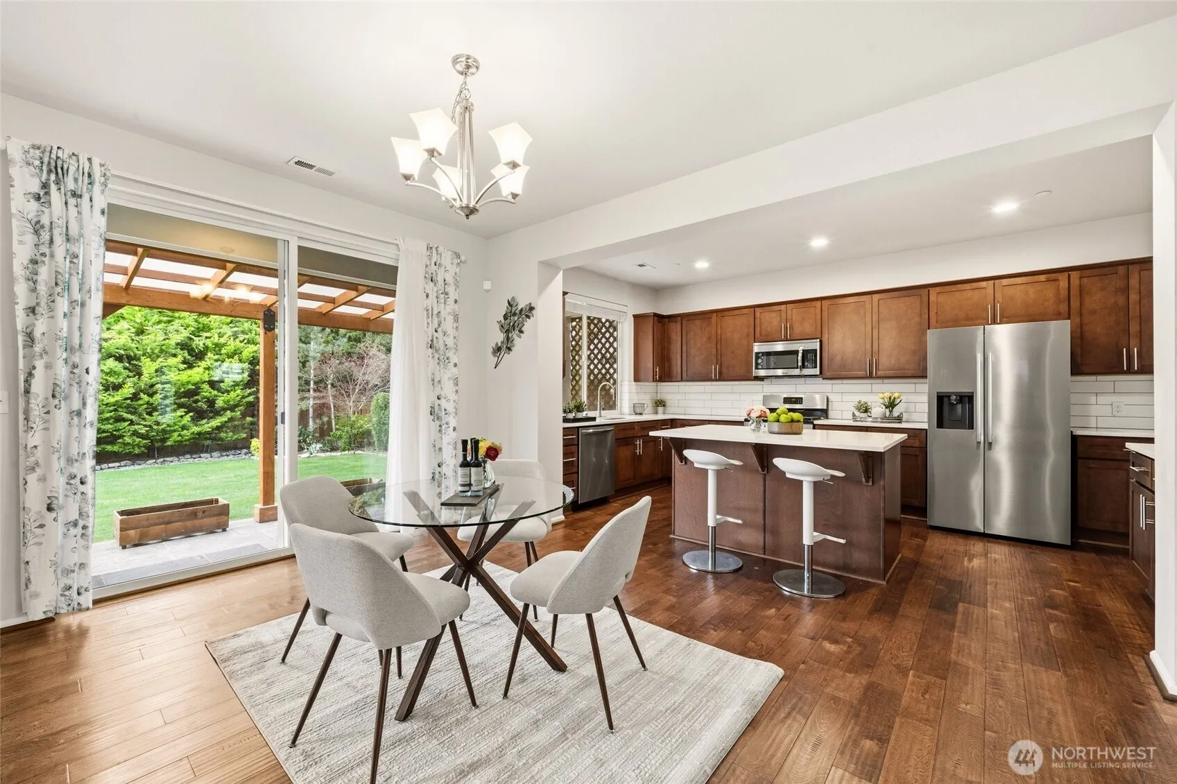 Impeccably maintained and beautifully updated, this inviting home is tucked away in the highly desirable Canyon Creek community of Auburn. Offering 2,796 sq ft, 4 bedrooms, 2.5 baths, and a 2-car garage, the layout is both functional and welcoming—perfect for everyday living and entertaining. The main level features rich hardwood floors, an open-concept living space, and a chef-inspired kitchen complete with quartz countertops, stainless steel appliances, a new refrigerator, a walk-in pantry, and an oversized island with seating. The great room flows seamlessly into the dining area and out to the covered patio. The backyard is truly a standout—fully fenced, thoughtfully landscaped, and incredibly serene. Sprinkler system equipped entire yard. Whether you’re hosting gatherings, enjoying quiet mornings, or letting pets play freely, this outdoor space offers both beauty and privacy. Upstairs, you’ll find a spacious bonus/flex area, a convenient laundry room, and a stunning primary suite featuring a spa-like 5-piece bath, double vanity, and an expansive walk-in closet. Ideally located just minutes from I-5, SR-167, SR-18, transit options including the Sounder Station, and Light Rail. Close to shopping, dining, and entertainment—this home truly has it all. Pre-inspected.
