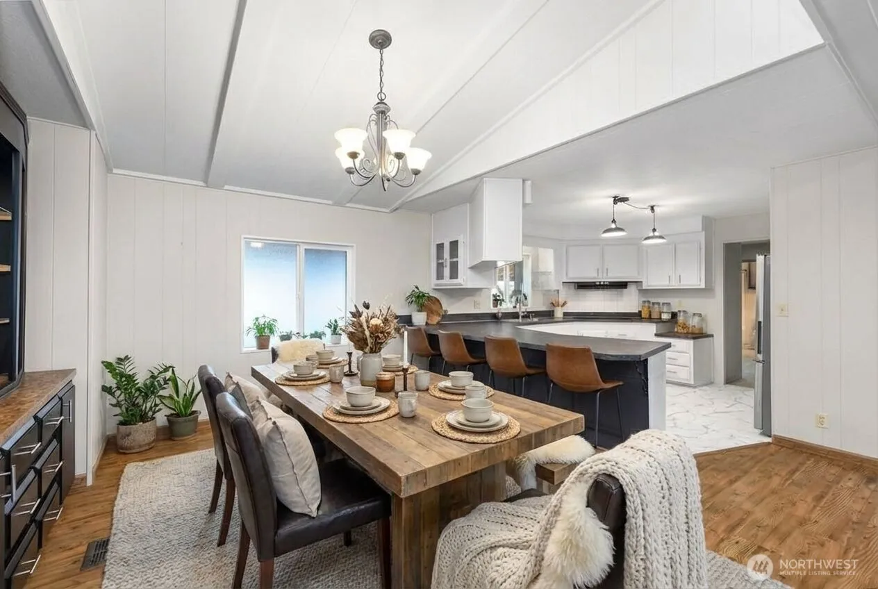 Newly Updated & New Price! Your 1,848 sqft. retreat features a thoughtful 3-bedroom split floor plan with private primary suite! Soaring ceilings create a bright, open feel, while two separate living spaces offer wonderful flexibility and multi-family living potential – one flanked by a cozy wood-burning fireplace. The open-concept design seamlessly connects living, dining, and kitchen areas—ideal for everyday living and easy entertaining. The kitchen has been nicely updated with newer countertops, fresh paint, a modern cooktop, vent hood, refrigerator, and pantry. The spacious primary suite is a true retreat, complete with a walk-in closet and a brand-new walk-in shower! Venture outside to enjoy a nice-sized, partially fenced yard accented with planter beds, while a spacious covered patio provides a comfortable retreat rain or shine. Recent upgrades include a new roof, water heater, flooring, and skylights in the living room. Top that off with additional perks which include a 10’x22’ shop with electricity, a carport, and easy access to shopping, dining, and Capitol City Golf Course. This charming all-ages Mountain Greens Park home offers an abundance of space, thoughtful updates, and a phenomenal location all in one!