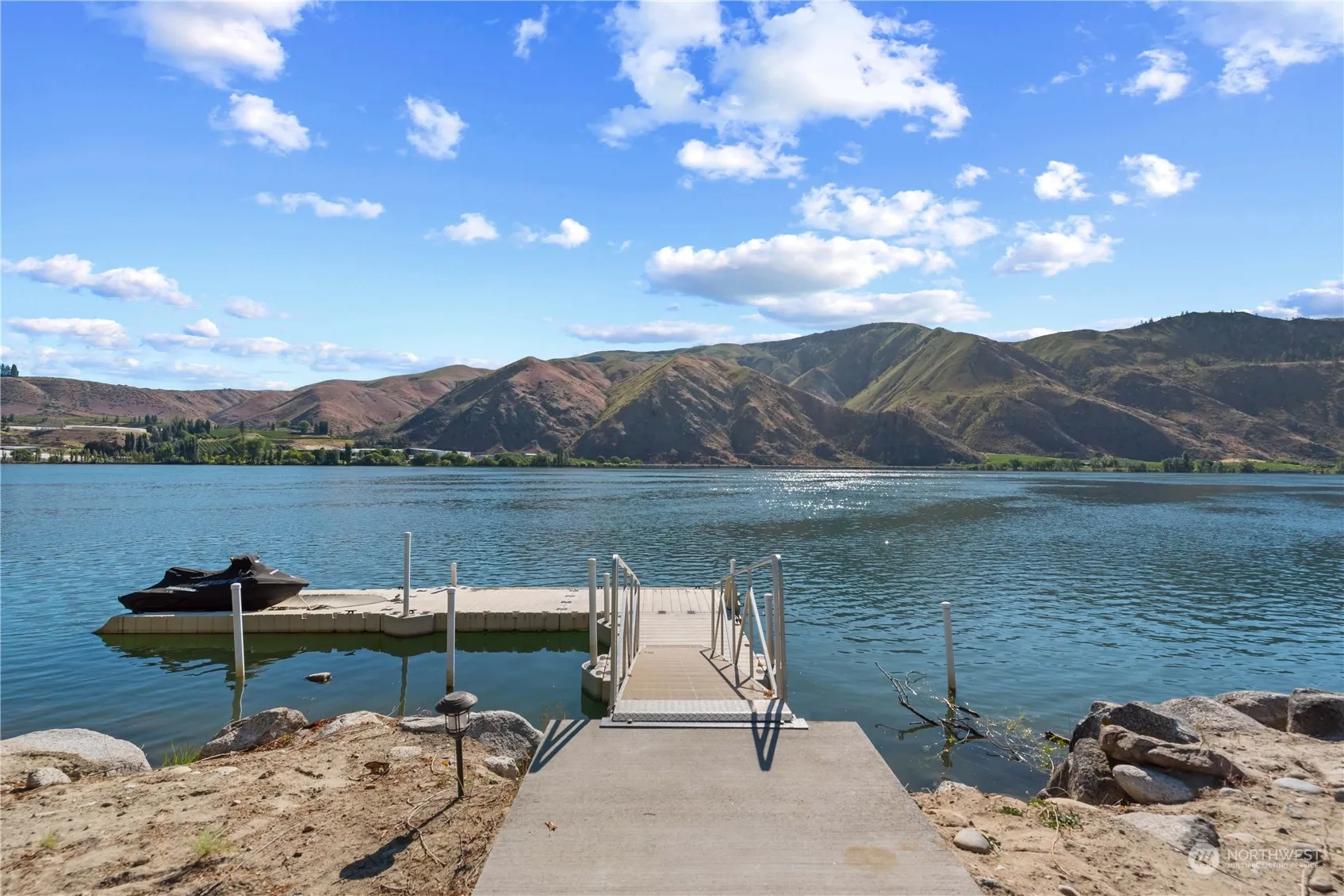 Rare Columbia River Waterfront Home with panoramic River & Mountain views on 2 acres! Beautiful furnished cottage with two car garage. Included is your personal dock, full size tennis court and lovely beach area. Private road adjoins river walking trail to the Entiat State Park with boat launch. Local amenities include a grocery store, 97A Pub, coffee stands, gas station & post office. 15 minutes to Chelan and 20 minutes to Wenatchee. Perfect just like it is or easily convert the garage for additional living space or use as an ADU and build your dream home. Lush lawns with complete privacy and patio for relaxing complete with hot tub. One owner home with no HOA or CCR’s.