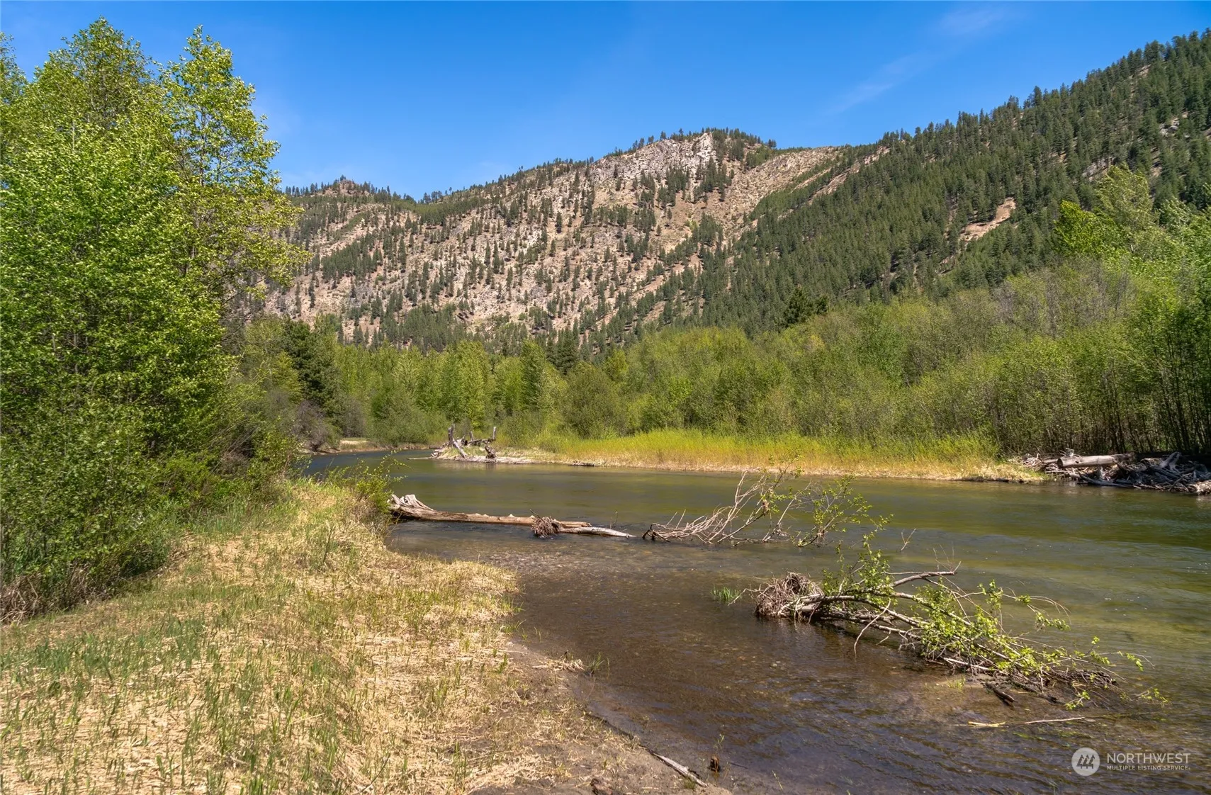 ENTIAT RIVER WATERFRONT acreage and garage hosting an upper-level studio apartment in the gated community of Riverwood. 250 feet of private waterfront footage. The garage has 840 sqft of shop space and 3/4 bath. The upper level has a living/sleeping loft area and 2nd bathroom. This beautiful parcel includes an RV hookup/dump, power, community water, and septic. Well-maintained path to low bank beach. Year-round well-maintained road allows for easy year-round access. Purchase to utilize as a getaway retreat, or build your dream full-time residence. Great end of the cul de sac location with privacy and most riverfront footage in the entire community. Adjacent to public lands. Perfect home base for year-round recreation.