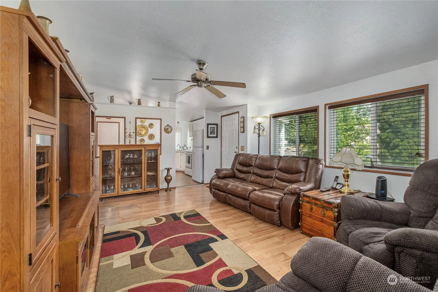Complete package of home and land plus detached 2-car garage awaits you in a cul-de-sac setting. This double wide manufactured home has been well taken care of. Open living and dining with updated flooring and paint throughout. Spacious Primary with updated bathroom. Large utility room, with plenty of storage and shelving. Elevated deck with 6-person hot tub and new pergola cover. Views of surrounding mountains are yours with this home! Fenced backyard with mature landscaping and irrigation water. Detached 2-car garage and driveway parking. One Owner home with pride of ownership is what you will find in this turn-key affordably priced home- close to all age schools. Live the Home Ownership dream today!