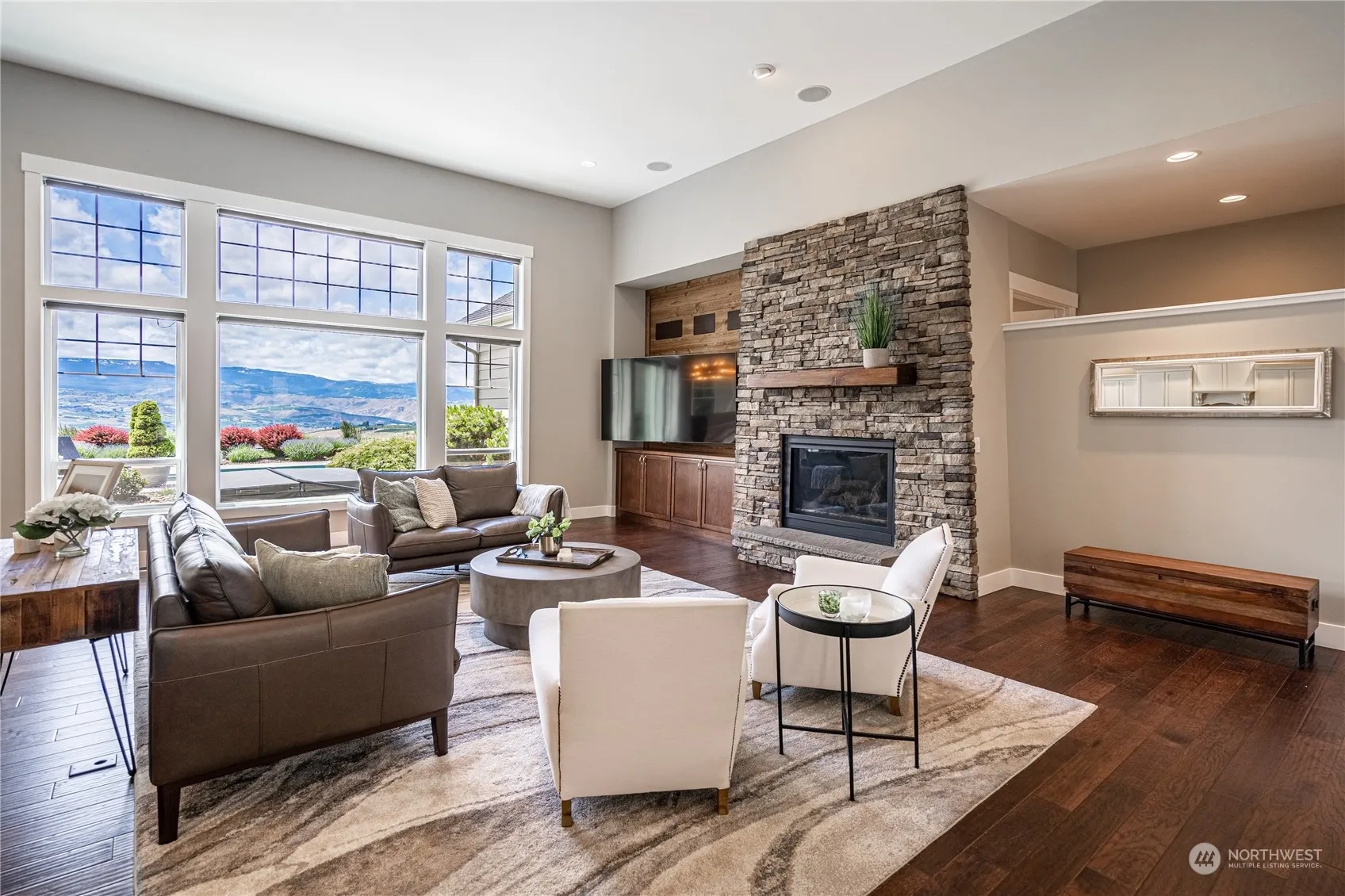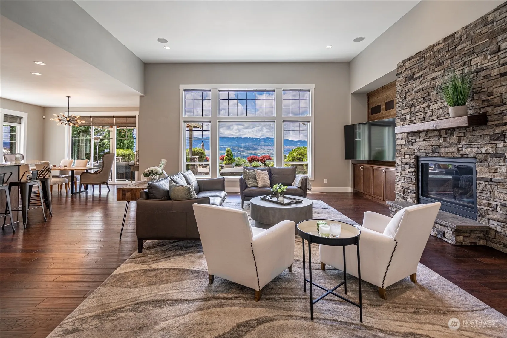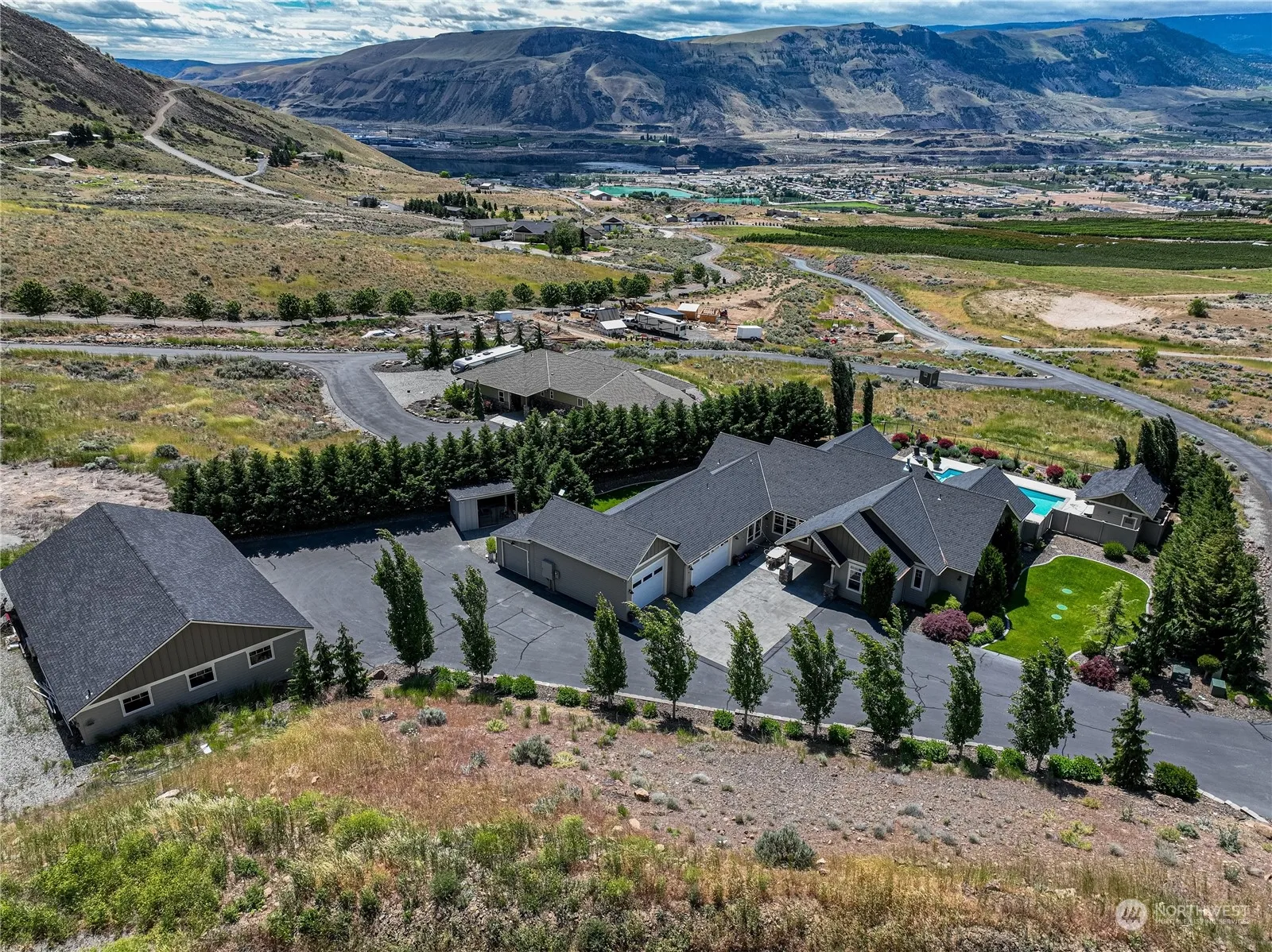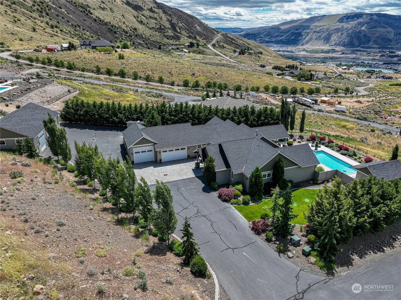 This impeccably maintained one-level home combines luxury and thoughtful details surrounded by panoramic views on every side. Styled for the most distinguishing tastes with an open concept floor plan, spacious living areas, and a fully appointed kitchen with granite countertops, stainless appliances, and a large island for added seating and prep space. The tranquil owner’s suite features a fireplace, relaxing spa-like ensuite with double vanities and a gorgeous walk-in shower. Enjoy indoor-outdoor living with an in-ground pool, spa, and a separate pool house for year round entertaining. An attached oversized 3-car garage plus a detached shop with half bath, RV parking space, and easy-care landscaping round out this must-see property.