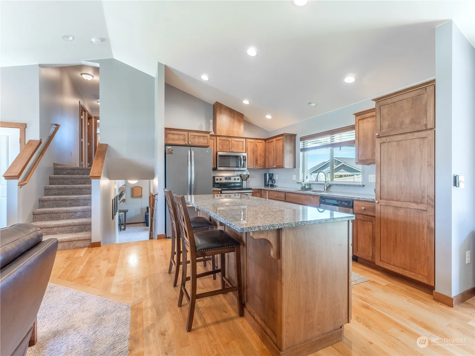 Rare Opportunity! RV parking and a 27 x 30 detached shop complete w/HP mini split for all your projects & toys. PLUS an oversized heated attached 3 car is attached to this tri-level home features an open floor plan with oak hardwoods on the main level, perfect for modern living & entertaining. The spacious kitchen features granite countertops & stainless steel appliances. The primary suite offers a luxurious bath with elegant tile & granite finishes for a spa-like experience. Oak, tile, & carpet flooring throughout blend style and comfort. Professionally landscaped, fully fenced yard for privacy and outdoor enjoyment. Relax on the covered patio off the dining room or the additional patio off the family room.