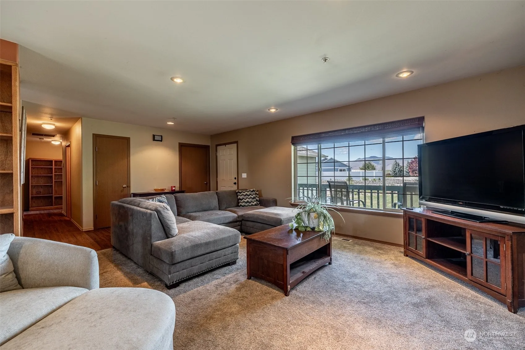 Welcome to this stunning 3-bedroom, 2-bathroom rambler, where panoramic views and sun-filled windows create a warm, inviting atmosphere. Nestled on an expansive 10,000+ sqft corner lot with massive backyard and huge deck perfect for all your entertaining needs. This charming home offers ample RV/Boat parking for your toys, an efficient underground sprinkler system, and fresh exterior paint. Inside, enjoy new carpet in the living room, updated LVP flooring, and a cozy fireplace in the living room. The kitchen is equipped with stainless appliances, perfect for your culinary desires. Embrace the charm and comfort of your new home sweet home, ready and waiting for you! BUYER BONUS $$$$$$ 1,500.00
