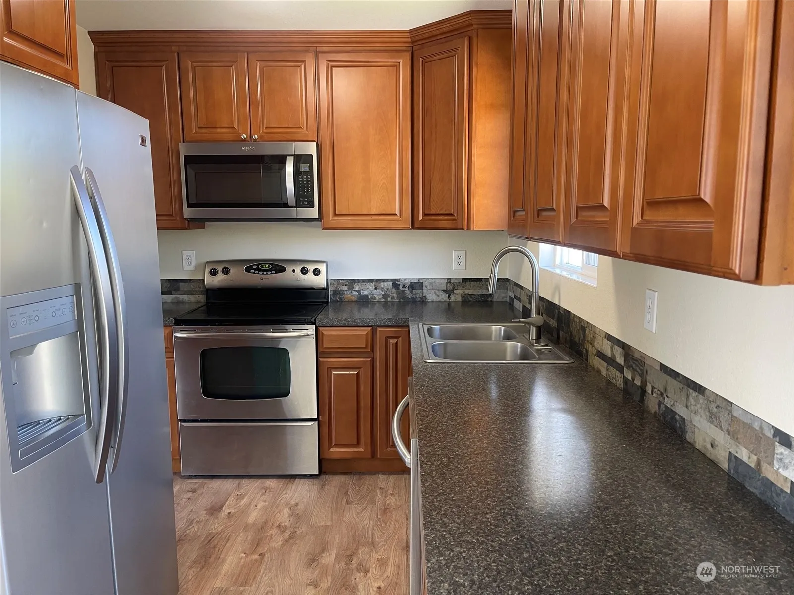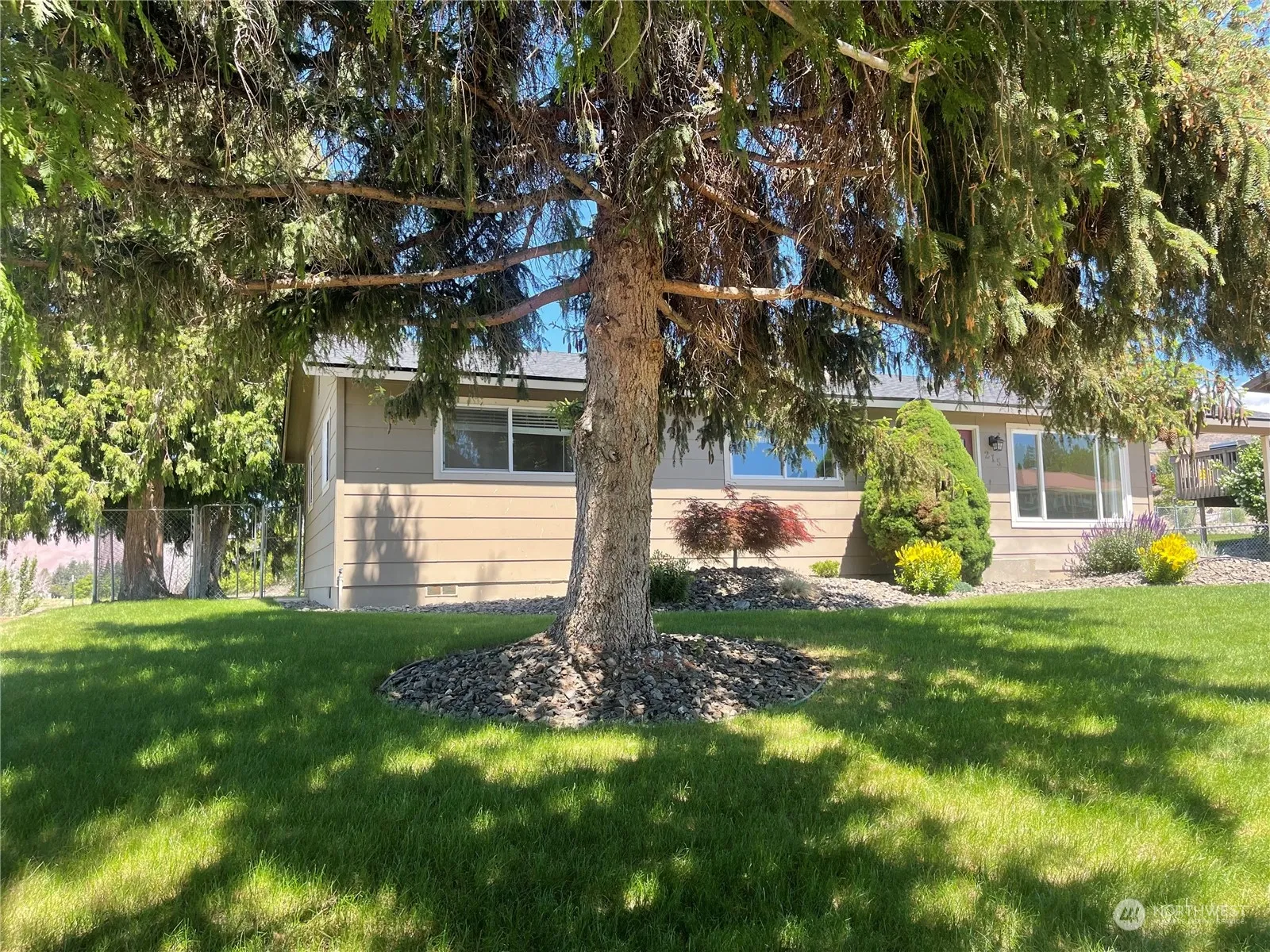 Adorable rambler on quiet street of East Wenatchee. Mature landscape includes a lush yard with shade to enjoy summer days. Sprinkler system & irrigation, fully fenced in the back w/ 2 storage areas. Beautiful kitchen and spacious living room. Brand new 30 yr roof. Move in ready, professionally cleaned/windows.