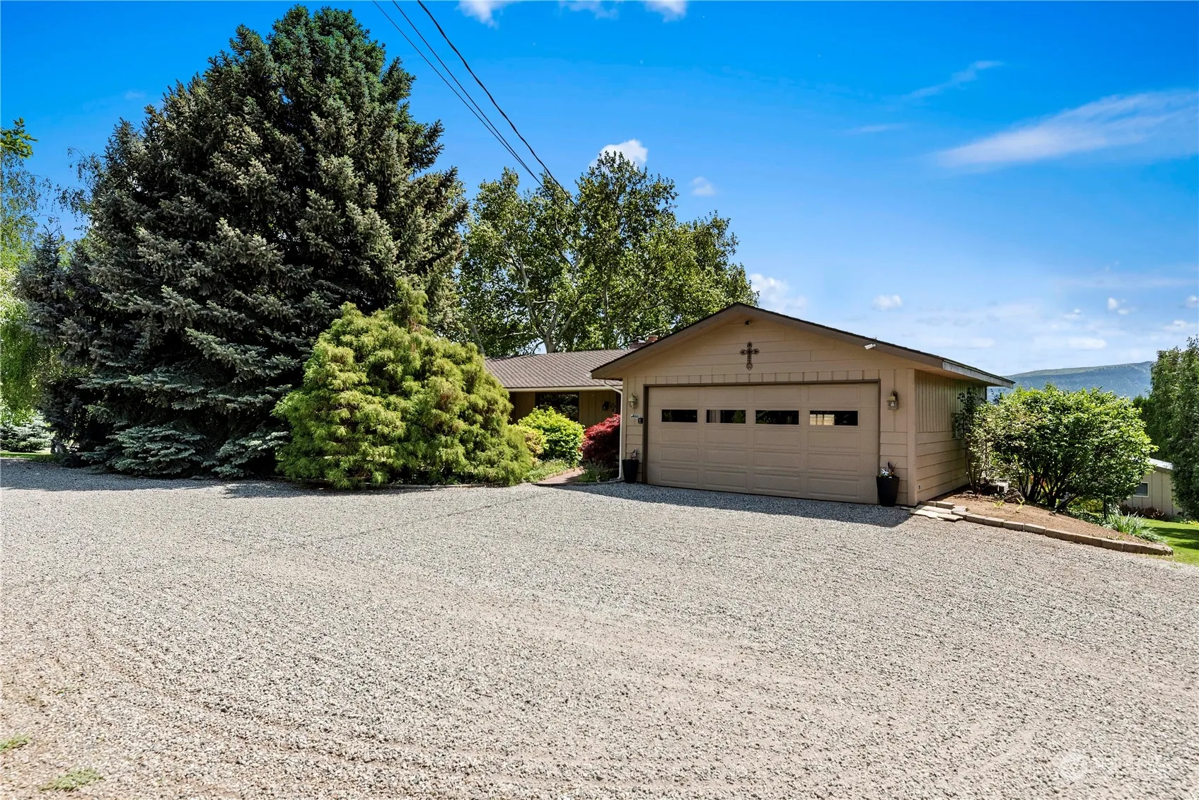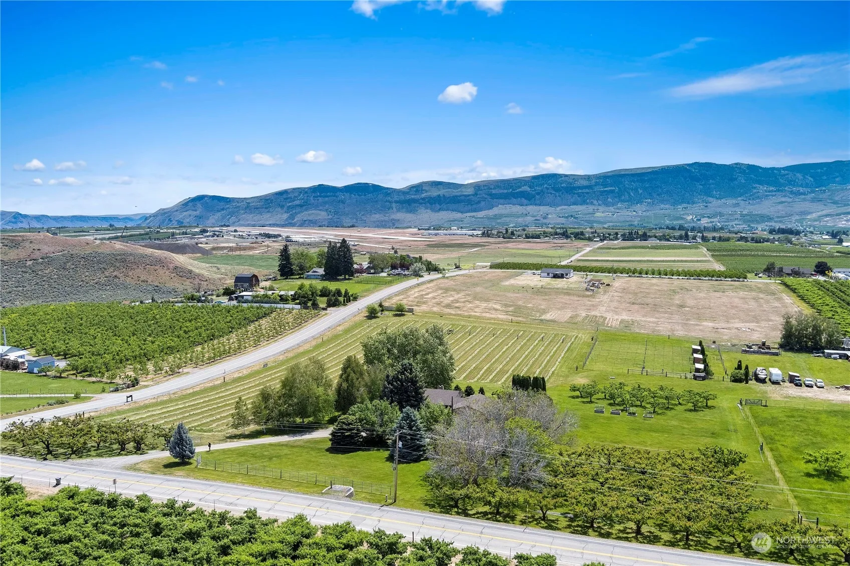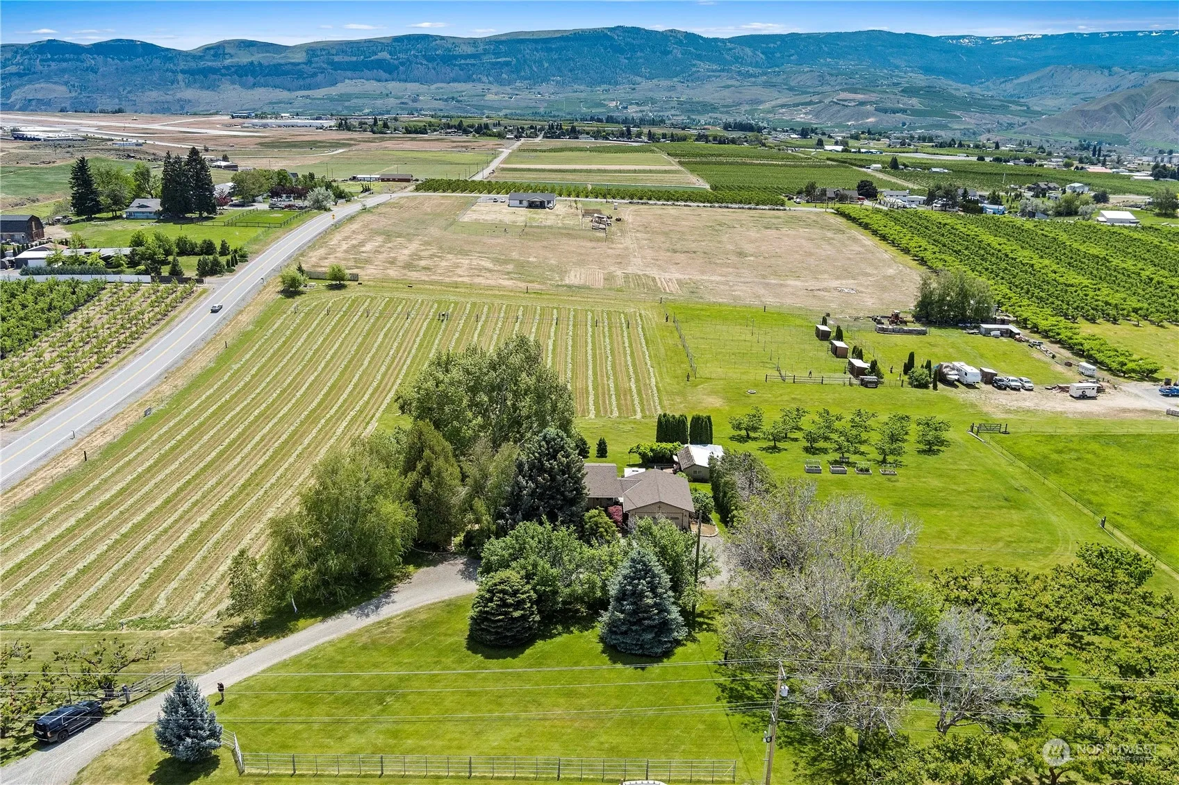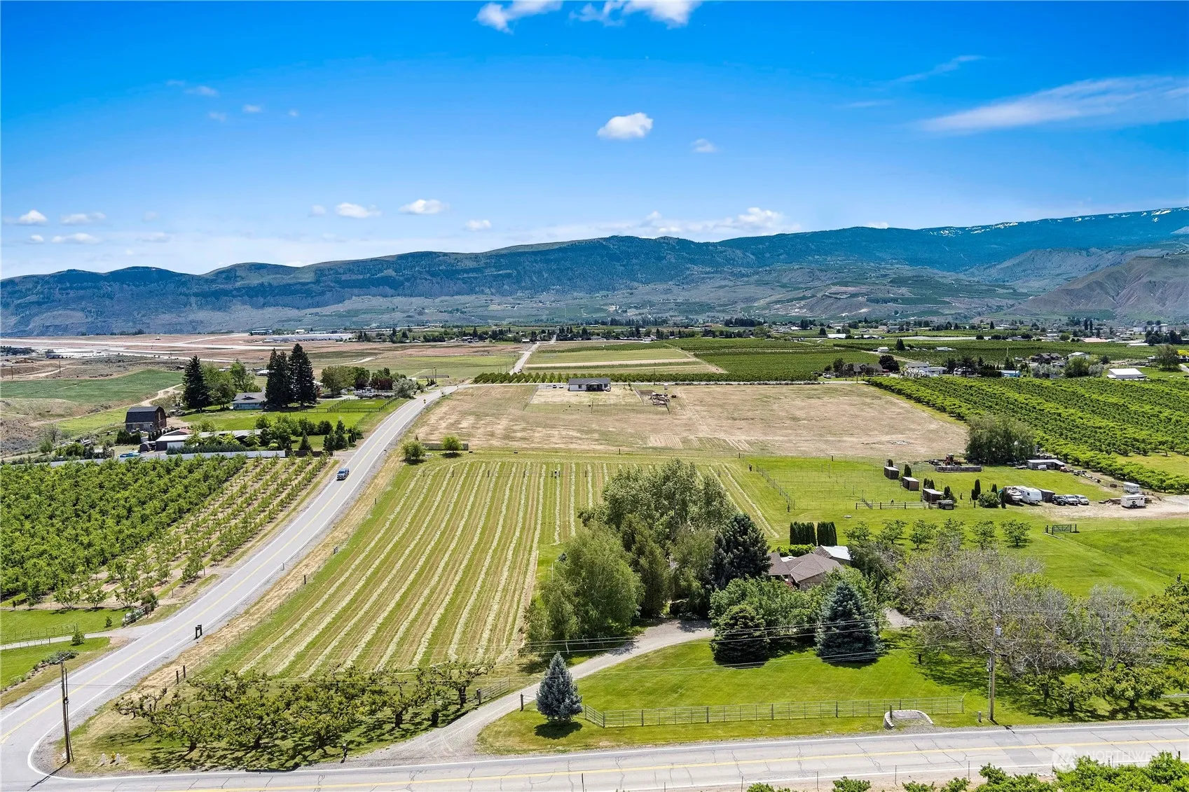 Turn your dreams into reality! Vineyard, horse stables, possible development.. 9 Pristine irrigated acres of land with some planted in alfalfa, a few apricots, apples and a few walnut and hazelnut trees, adds to the natural beauty of the land. The majestic territorial views and one of the oldest sycamore trees around, creates a serene and picturesque environment. Private drive way off the main road down a treelined drive to the main home boasting 2800 square feet, with oversized 2 car garage/shop. Home has remodeled kitchen and bathrooms with granite surfaces and new cabinetry. Hardwood floors throughout the home, and under the carpets on main floor Oversized garage, separate building for workshop and workout room. 6 animal pen 120′ by 20′