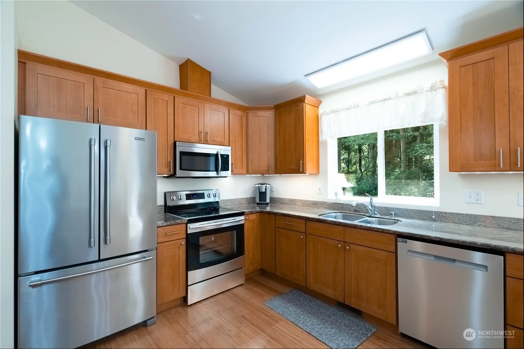 Spacious 2056 sq ft rambler on 2.06 acres w/detatched 1456 sq ft garage (28×52). Featuring 3 spacious bedrooms, 2.5 baths, huge open kitchen w/slab granite counter tops, craftsman style cabinetry, SS appliances, large island, living room area as well as a family room. Vaulted ceilings, skylights, and lots of windows bring in lots of natural light. Primary bedroom suite includes walkin closet and 5 piece bath. Energy efficent forced air furnance w/heat pump (A/C). Wired for generator! Oversized garage with woodstove offers lots of space for hobbies and storage. Very private setting, huge yard, plus a Studio shed with power, water, and heat so many options for use. One minute to HWY 16, 8 mins to Gig Harbor or Port Orchard great location!