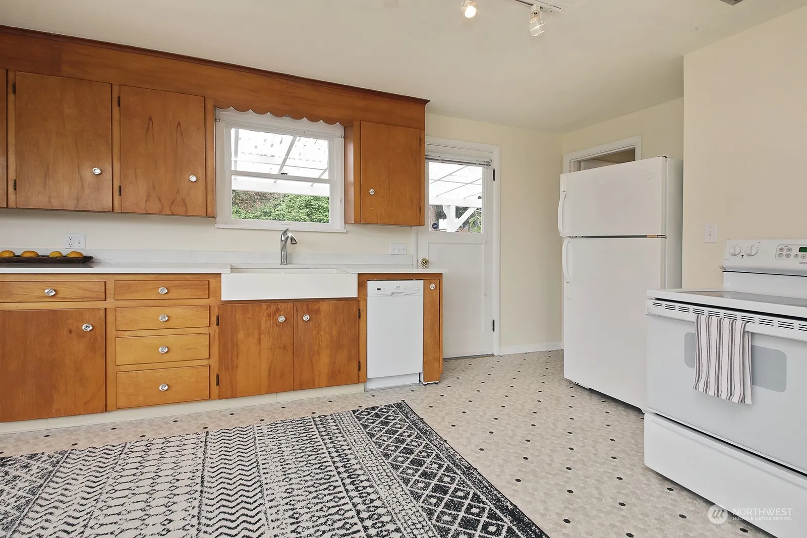 Welcome home to your vintage one level cottage featuring 2 bedrooms and 1 bath, eat in kitchen and light filled living room, all freshly painted & new carpet in bedrooms. Home is on a generous sized lot in walking distance to stores, bus and ferry. Detached 1 car garage with 2 rooms which have been used for storage but could be a shop or art studio. Cottage is under 1200 sq. ft. which might qualify as an ADU if county allows you to build another dwelling, endless possibilities await your vision.