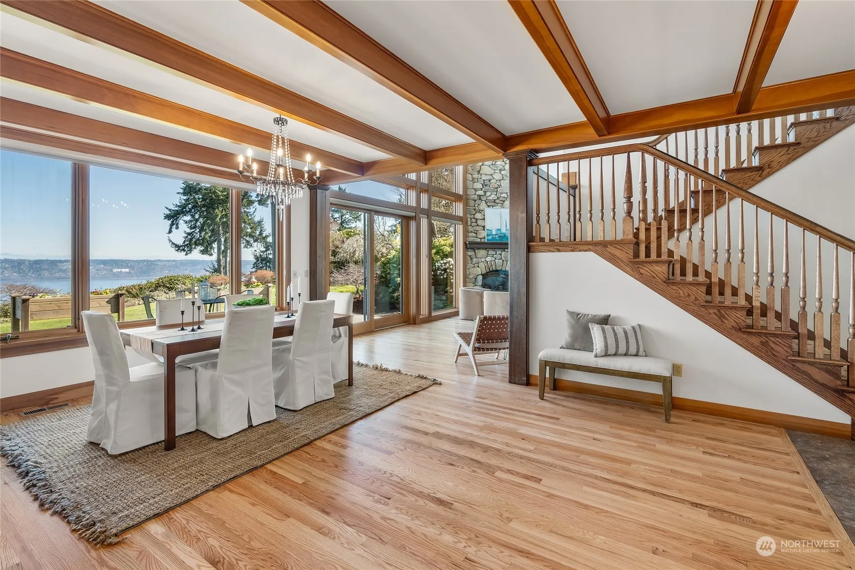 Misty morning views across the Sound. Bald eagles gliding by at eye-level, set against the Mukilteo ferry and snow-capped Cascade mountain peaks beyond. Serenity and awe are ever-present on Possession Ridge Lane just by turning your gaze to the east. Completely remodeled in 2005, this home’s every detail, from artful wood beams supporting soaring ceilings, to towering windows spanning the entire flowing floorplan, was chosen with love. This estate features stunning custom kitchen with gas appliances and double oven, main level primary bedroom, and garage parking for 7 vehicles (including RV). Additional 1232 sq ft guest house gives visitors independence, or rent out for extra income. The idyllic spot to make real your island life fantasies.