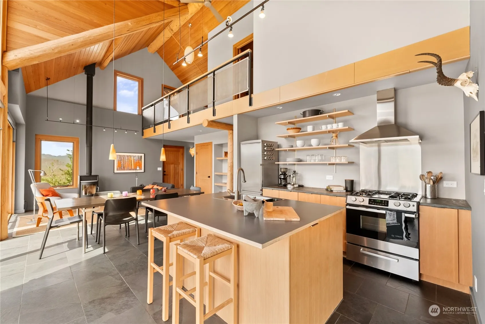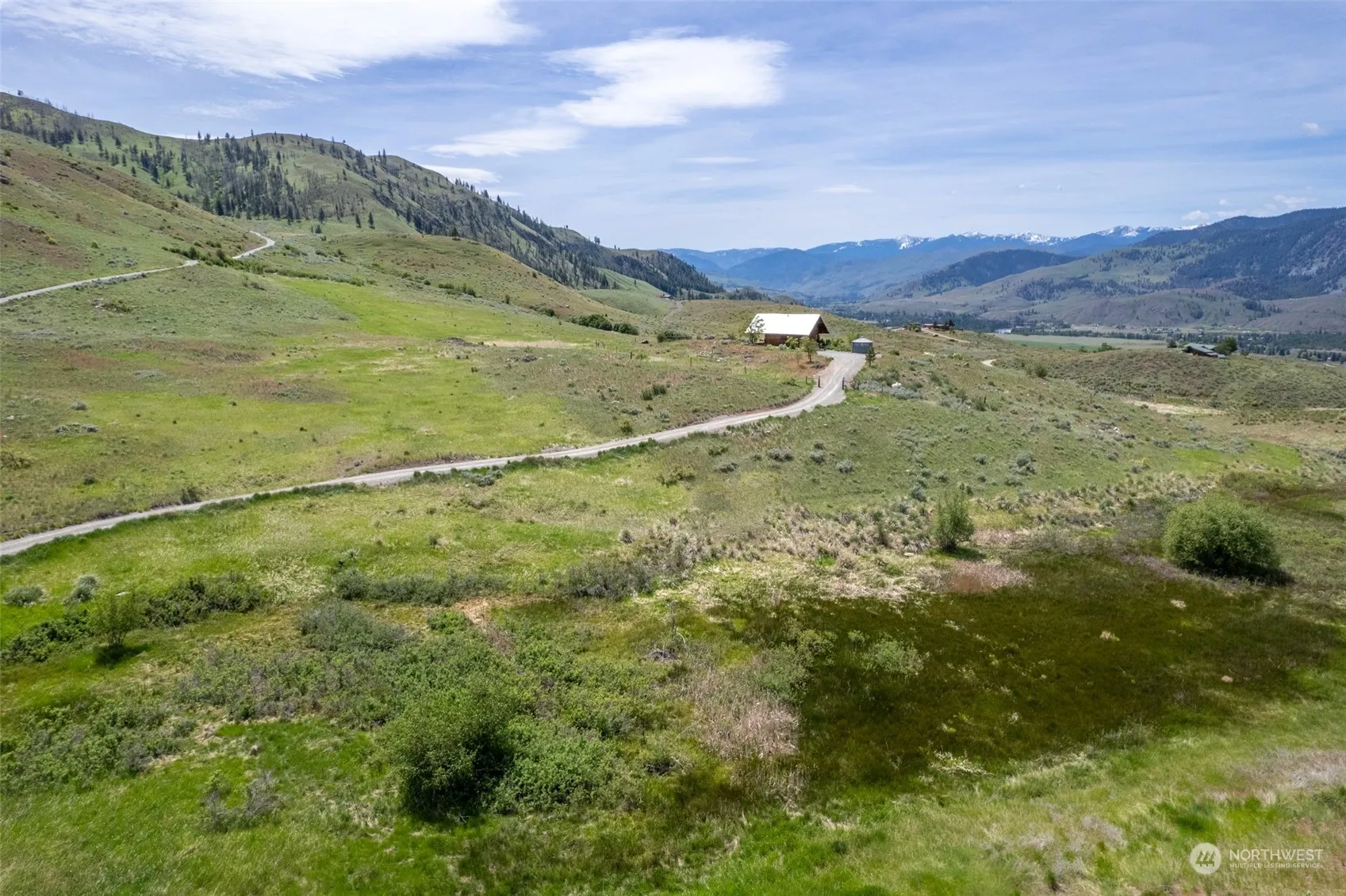 Sweeping Sawtooth and N Cascade views backdrop rolling shrub steppe hillsides and wildlife rich sub irrigated sanctuaries on this 20 acre uplands gem. Log, glass, and steel come together creating a 1125sf 2 bed 2 bath work of art. Radiant floor heating, ductless mini split, and free standing woodburning stove create a comfortable climate year round. Custom lighting and railings, excellent use of space, slate flooring, large soaking tub and primary bedroom on main floor. Expansive covered south facing deck for shady entertaining or quiet observation of harriers, hawks, kestrels, hummingbirds and deer migration. 1700 gallon water cistern w/ system pumps and electronics replaced in 2020. Fenced garden, fruit trees, automatic watering system.
