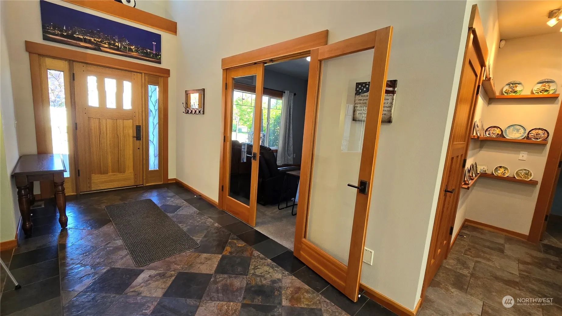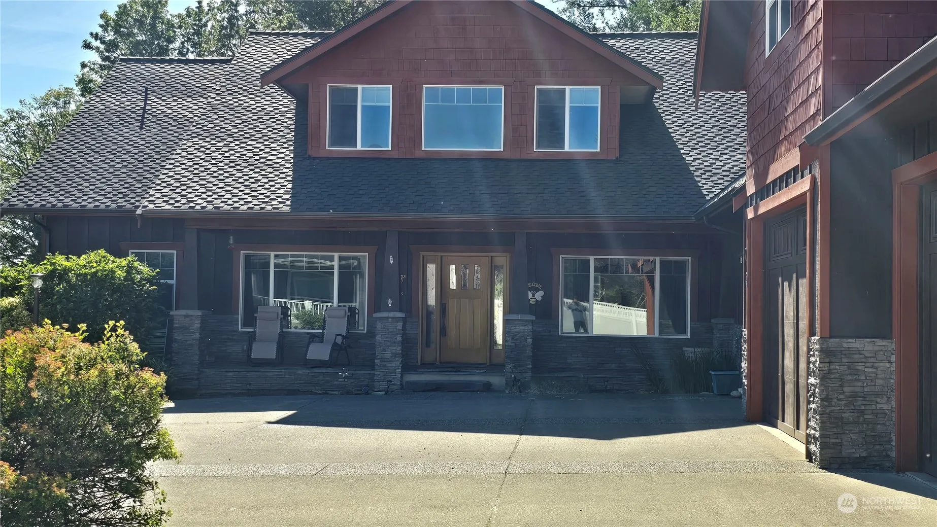 Quintessential NW Contemporary Craftsman: Was the builder’s personal home; & it shows! 5 bedroom + den and a huge bonus room, soaring ceilings & windows in the spacious great room, a true chef’s kitchen, only the best. Every room is extra-large & quality is everywhere. Primary on the main, HUGE bonus room, oversized 3 car garage. Home is built up high/never flooded while offering expansive river bank frontage & privacy. Impossible to describe the features & quality of this exquisite home; here are a few but you really must see it to believe it. Featuring: New 50-year roof. New carpets, HVAC upgrades. Sealed crawl space. Whole house AV system. Walk-in closets in 4 of 5 huge bedrooms. Bath with outside access. ASUMABLE VA LOAN AT 2.25%!