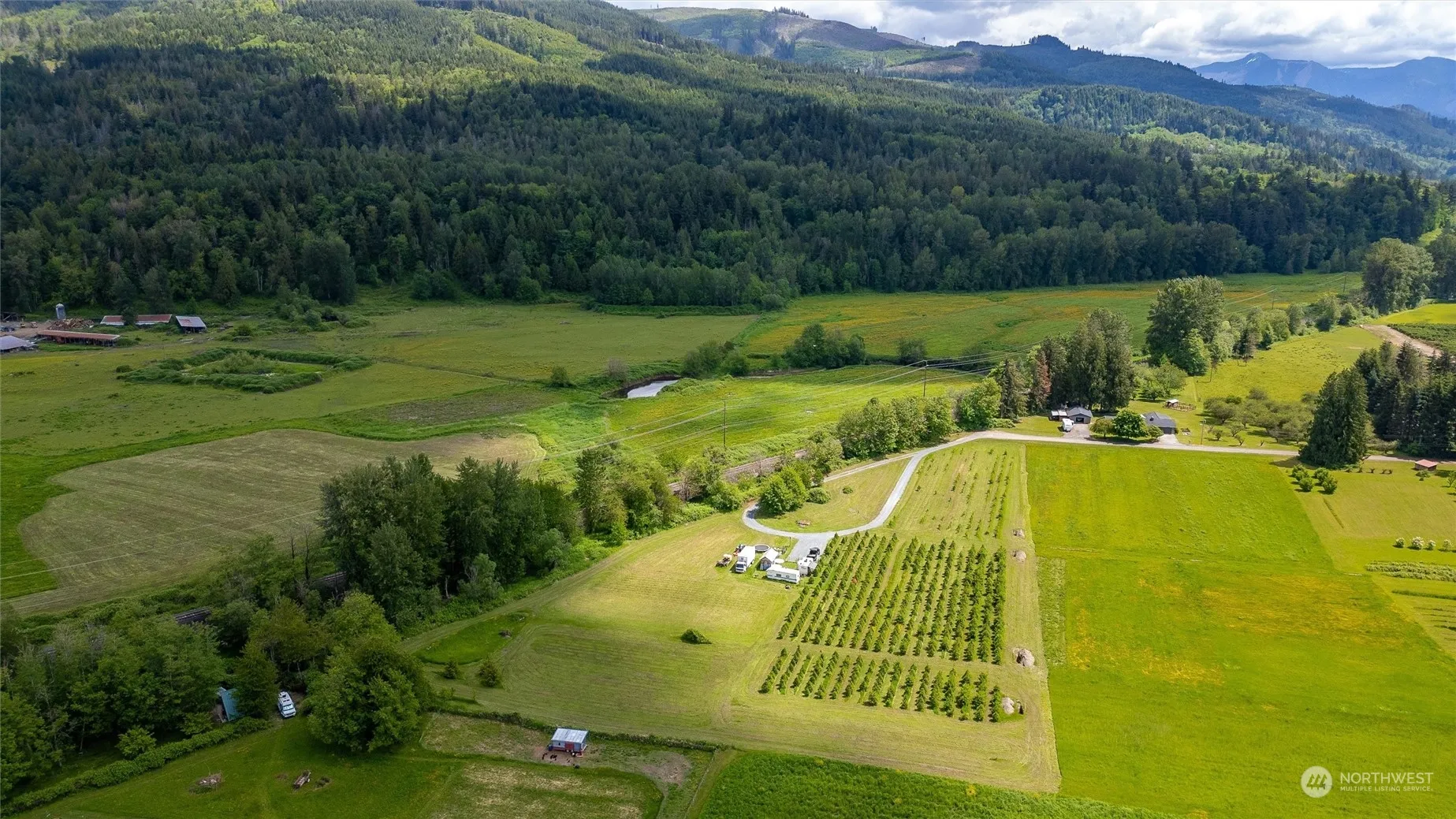 This 5.09 acre lot with gorgeous mountain views is the perfect location to build a custom home. With well-drained sandy loam soils, this is ideal acreage for farming or livestock. Tucked securely in the foothills and out of the path of the Northeastern wind there are many potential building sites on high dry ground, and room for an ADU, shop or barn. New well in place, septic system design for a 6-bedroom septic has been applied for and driveway installed. Highspeed internet available, natural gas in the street, 15 min to Bellingham, near river access & boat launch at Nugent’s Corner, private paved access on a dead-end road. The Douglas Fir Christmas Tree Farm adds to the beauty of the landscape.