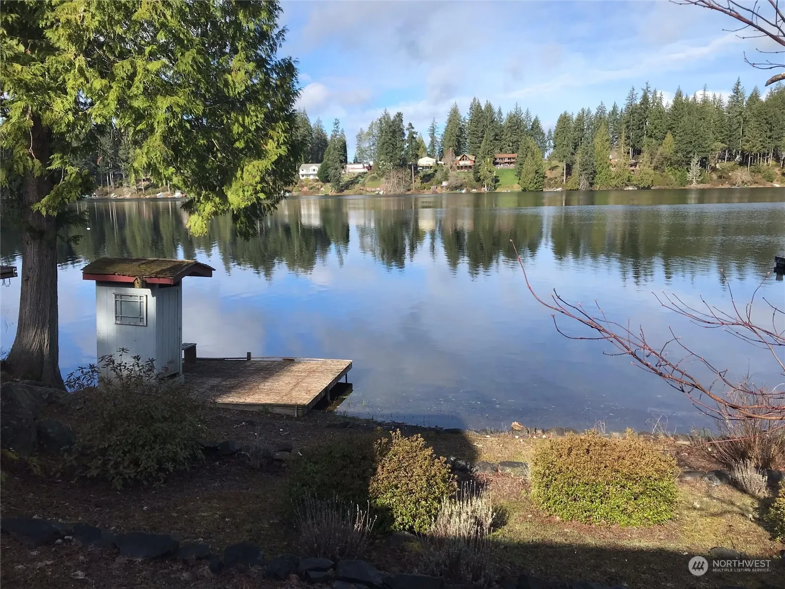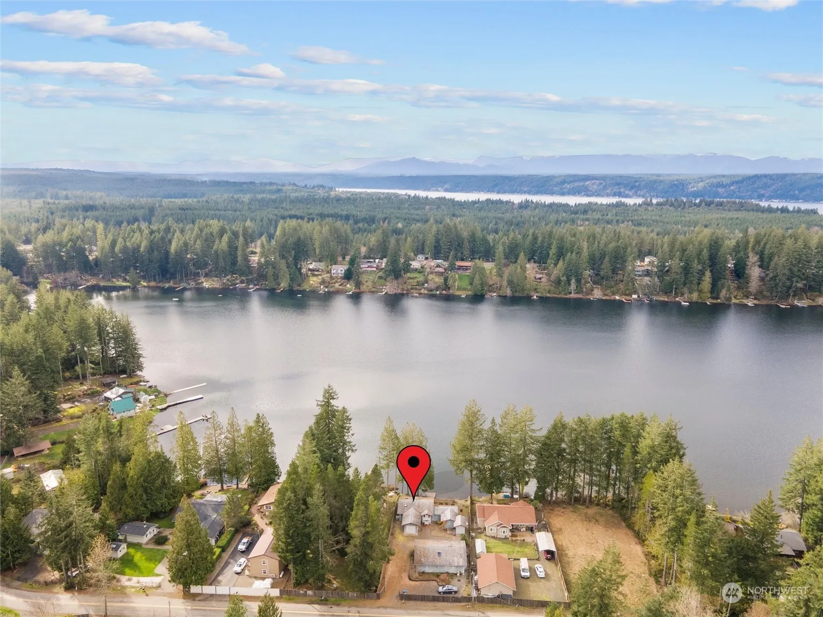 Enjoy 75′ of low bank waterfront living on tranquil 75-acre Trails End Lake! This half-acre property is located on one of the best level lots on the lake with easy access for water sports, which include swimming, kayaking, & especially trout-stocked fishing. This rare property also boasts a 40’x30′ insulated wood stove heated shop with a dry concrete slab floor, two garage doors, and plenty of power outlets. The interior features several skylights that provide great ambient light, a large jetted tub in the primary bathroom, a kitchen island, a French door in the living room, two hot water tanks, air conditioning, and all appliances. The optional HOA includes a clubhouse, waterfront park, & Hood Canal access. Live the waterfront dream today!