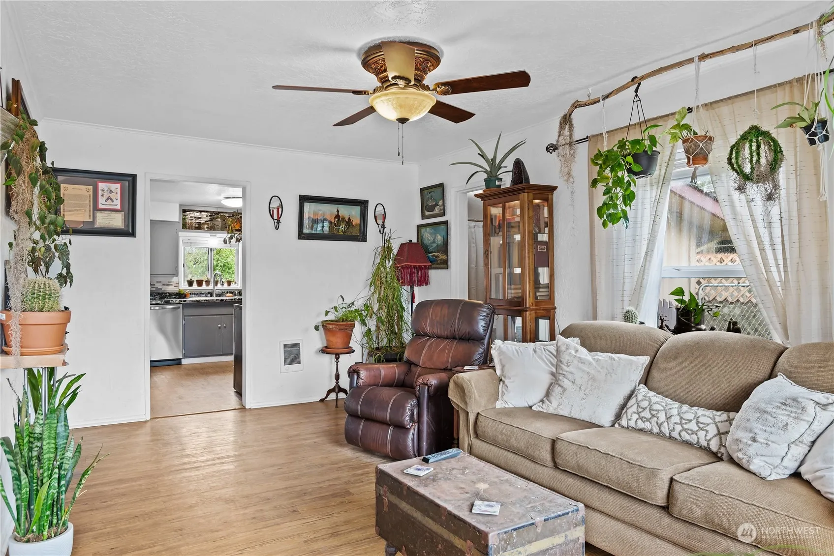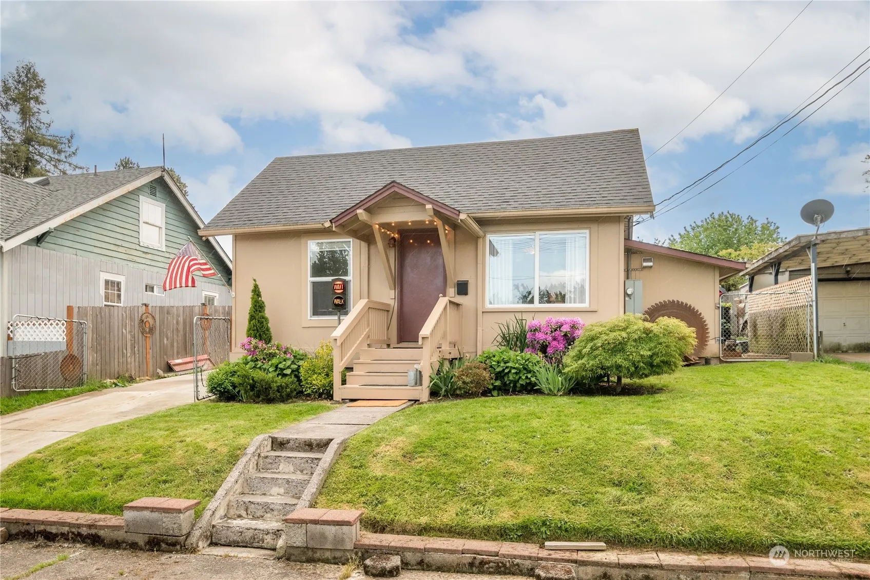 Updated Bungalow ready for its new owners! Home is a 2 bed 1.5 bath with an oversized 1 car garage. Home is cozy and been updated over the last 5-6 years. Roof/driveway/patio/foundation all done within the last 5 years. Inviting space to call home with laminate and vinyl flooring throughout is a bonus here too. The garage/shop space is a pleasant surprise! Gearhead alert!!! Plumbed with compressed airlines and built in work benches make this the perfect shop space. The garage also has a 3/4 bath and is sheet rocked and textured with two cadet heaters so the potential for an ADU is here with very little work needed to complete! Out back is an awesome deck, and a garden area too.. This home has a lot to offer.. Don’t miss out on this one!