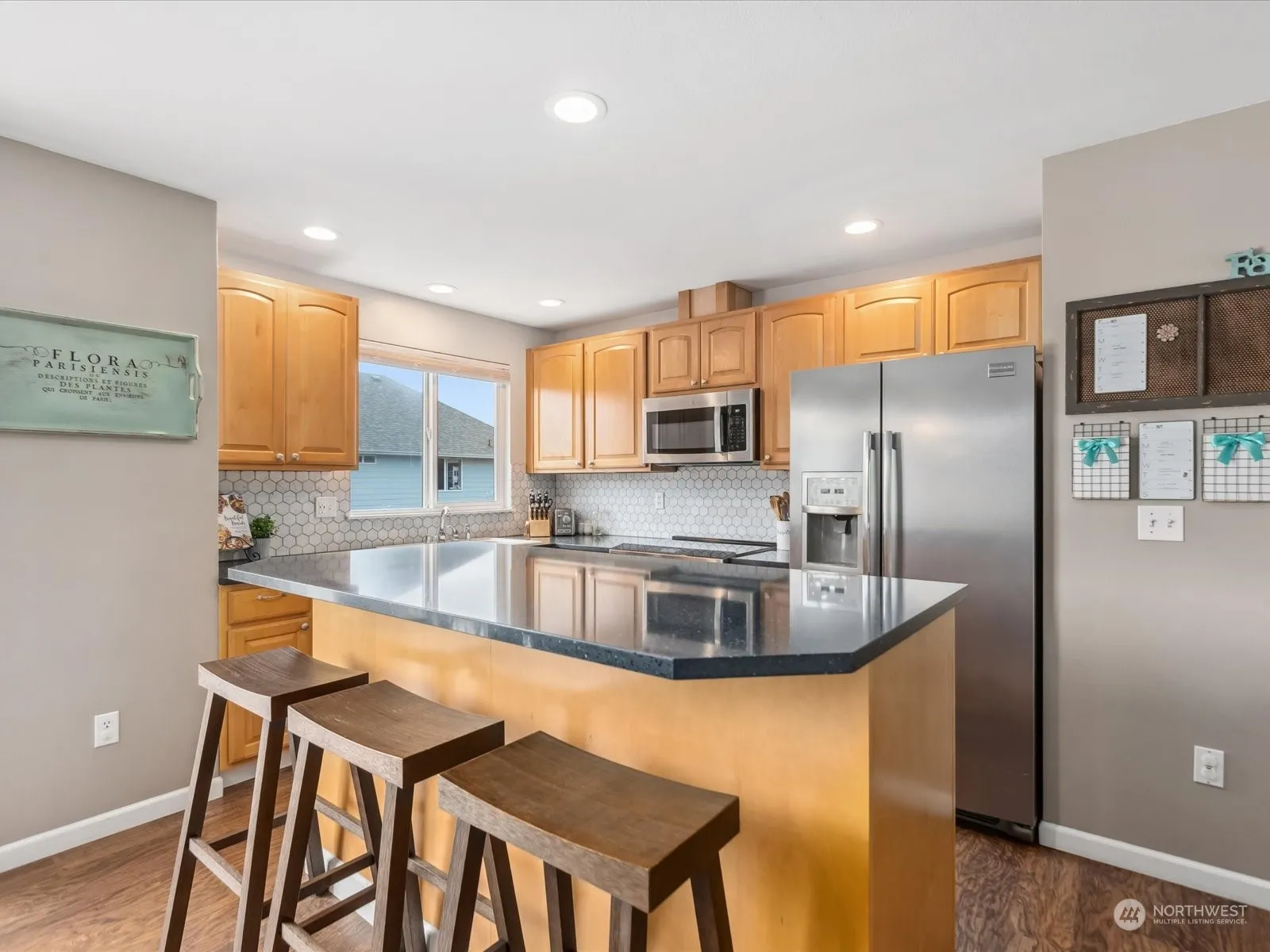 This beautiful 4 bed, 3 bath home in highly desired Fryelands neighborhood is perfect for entertaining. The open floor plan creates a spacious and inviting atmosphere. The upgraded kitchen features a large island w/storage space, quartz countertops, Carrara marble backsplash, SS appliances including GE induction stove w/air fryer. French doors open up to the large primary bedroom w/full bath, & custom organization system in the walk-in closet. Lower level features the 4th bedroom, full bathroom, laundry area & bonus room. Extra deep garage allows space for hobbies & storage. Vegetable gardens & new 6-person cedar sauna in the fully fenced backyard. This fantastic location is close to many parks, restaurants, shopping & easy 522 access!