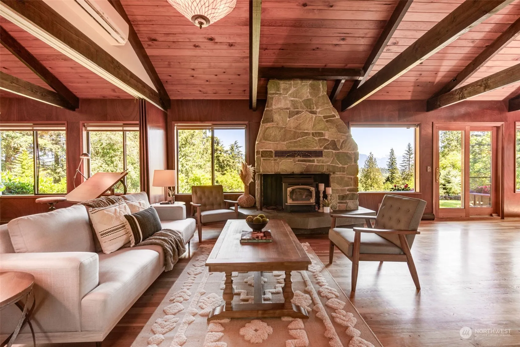 This exquisite mid-century custom rambler offers the perfect blend of warmth & nature. Unparalleled mountain views and carefully thought out gardens create a tranquil retreat on 14+ private acres. Inside, you’ll find sophisticated African Mahogany Sapele paneling & Montana Glacial stone. There is an expansive, remodeled kitchen featuring granite surfaces and modern applcs. A large pond + gazebo offer a peaceful spot for relaxation, while the large barn, equipped w/solar panels & shop space, adds both functionality and sustainability. Fenced pastures ready for livestock and the barn could easily convert to equestrian use. Whether you’re an avid gardener, animal lover, or simply seeking a serene escape, this property delivers in every way.