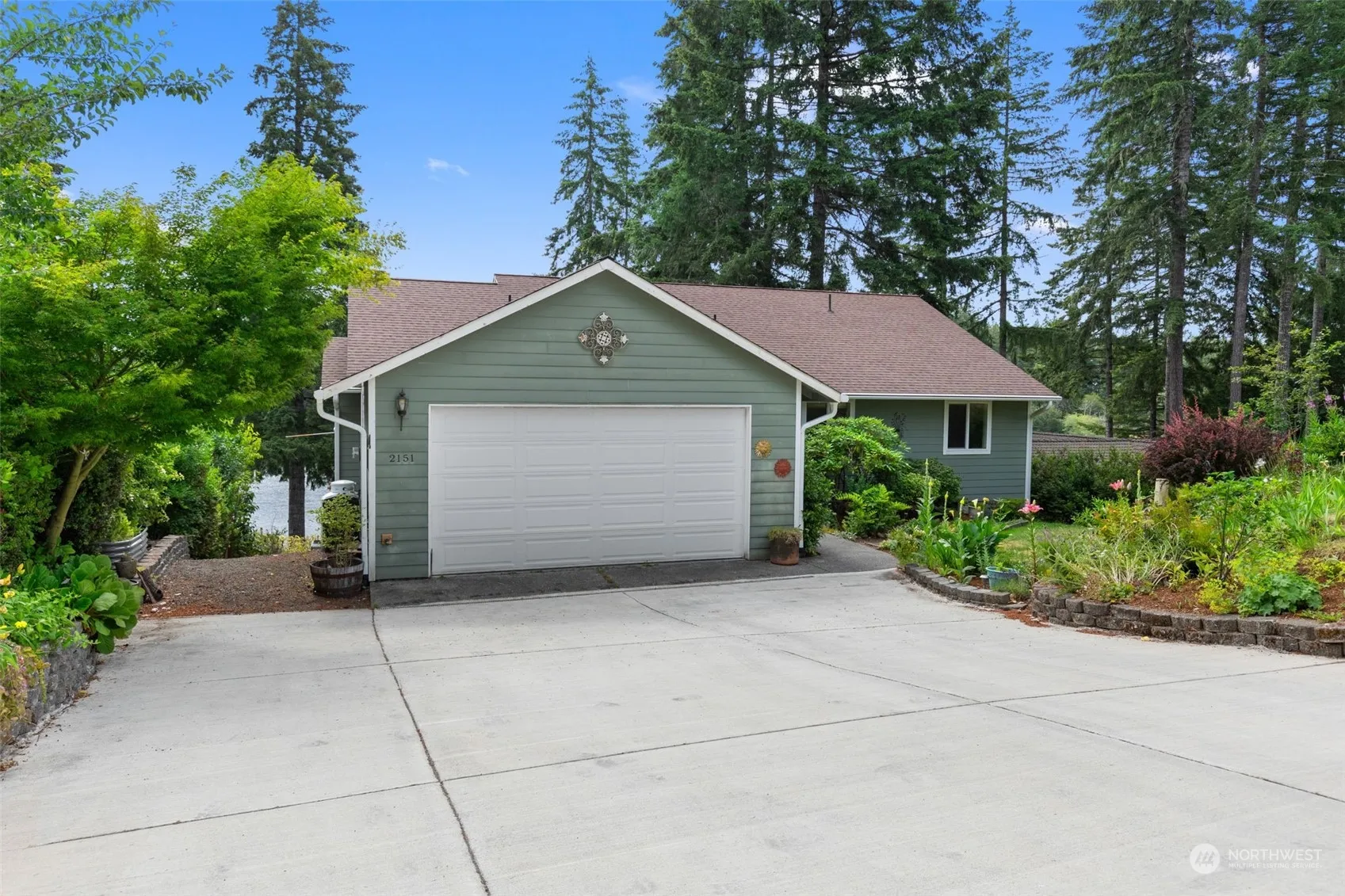 Embrace the lakefront lifestyle! Nearly 3000 sq ft daylight rambler! Main level boasts mesmerizing views from most rooms. Great room layout with cozy gas fireplace, granite kitchen, LVP flooring & A/C. The huge 2nd bedroom easily converts to 3rd bedrooms & poss. 4th downstairs (2 bed septic). The large Trex deck is accessed from both the great room & private owner’s suite & is an entertainer’s delight. Lower level w/separate entrance & full bath needs sheetrock & flooring to create your vision-rec room/MIL/Airbnb. Huge lower level deck overlooks terraced path to 75′ of lake frontage. Year-round fishing from this spring-fed, trout-stocked lake. Bonus Hood Canal private beach access for clams/oysters. Great potential & instant equity!