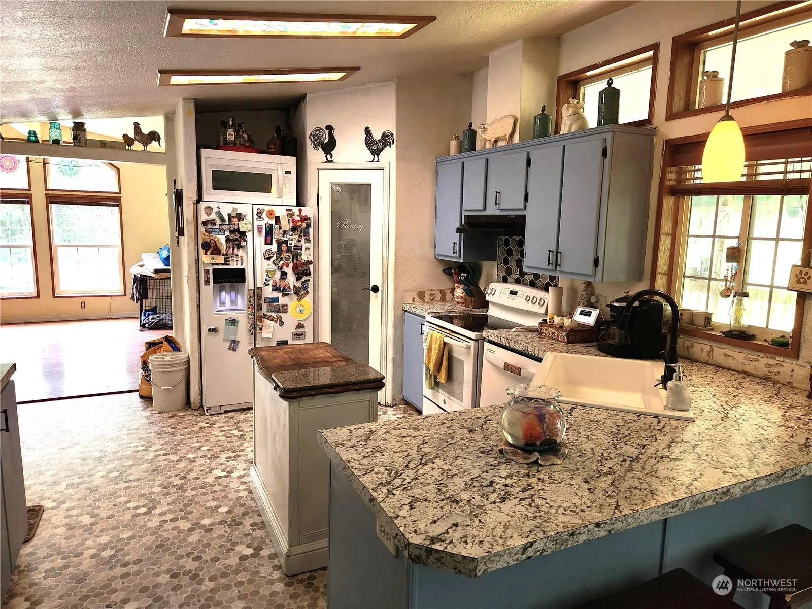 Triple wide on 5.1 acres. 2340 SF, Covered deck in front, open deck in back. Spacious home, with lots of opportunities. Open floor plan. Living/dining room, Large family room. Kitchen opens to both living and family rooms. Kitchen with island, pantry and eat bar area. Primary suite, some remodeling done in bath. Laundry room. Sliding doors in front and rear. Two other bedrooms. Outside with detached garage/barn, fenced pasture. Firepit, Pool. Home has lots of opportunity for instate equity. Private setting. On private well and septic. Peaceful country setting. Selling as-is.