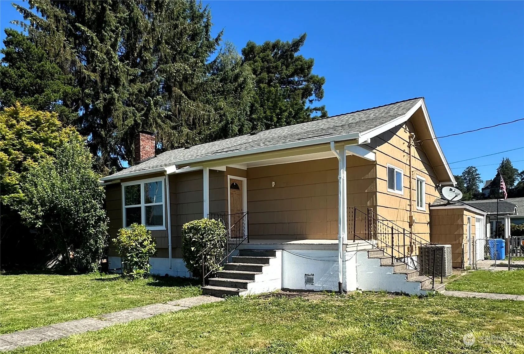 Calling all investors! Perfectly set on a large corner lot, this cute bungalow, with new paint inside and out, is ready for your personal touch! With two bedrooms and one bath, there is newer flooring upstairs (936 SF) w/ an unfinished basement (928 SF) with laundry. Fully fenced, the property includes all appliances, heat pump, and 1.5-car garage with plenty of storage. Enjoy coffee on the front porch in the morning or s’mores around a fire pit in the backyard. Close to shopping and easy access to I-5, this home may be “just right” for you! Sold AS-IS.