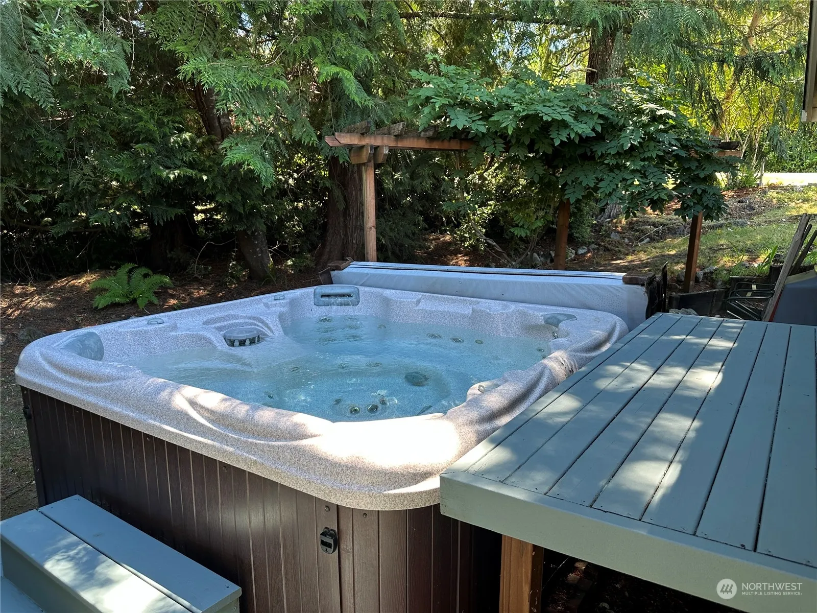 COMMUNITY WATERFRONT home in the lovely Twanoh Falls community. This home is amazingly gorgeous inside & out. If you are looking for a move in ready home to enjoy & spend your Summer days on the beach at Hood Canal, you must tour this home & property. The floor plan is open and airy with high ceilings in the main living room & a cozy pellet stove for chilly evenings. The interior is updated with high end finishes. Hardwood floors, granite in the kitchen & stainless steel appliances. Step outside to your own private oasis, a large deck with views of Hood Canal & the Olympic Mountains, a mature yard with a fire pit, private hot tub & garden box. All situated on a corner lot. Amenities include beach access, a large dock, & waterfront park!