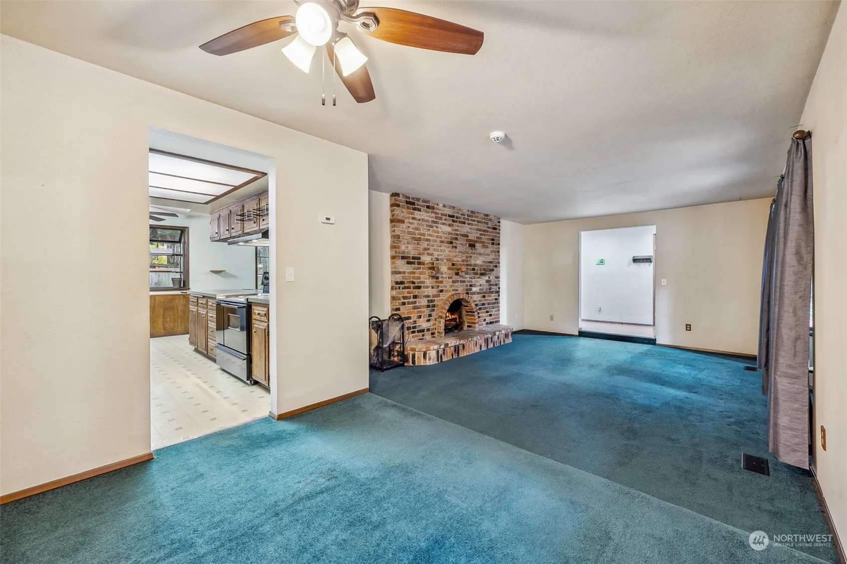 Welcome to this one story home, privately set on 1.22 acres. Step into the oversized living room with wood burning fireplace and natural brick surround. All appliances remain in the kitchen with plenty of countertop space. Family Room and dining room each located off of the kitchen, along with sliding glass door leading to back deck and backyard. Primary en-suite with stand-up shower & ample closet space. Mudroom & laundry room off of 2 -car garage with tandem shop area. Newer furnace with Air-Conditioning! Enjoy this private setting and make it your own!