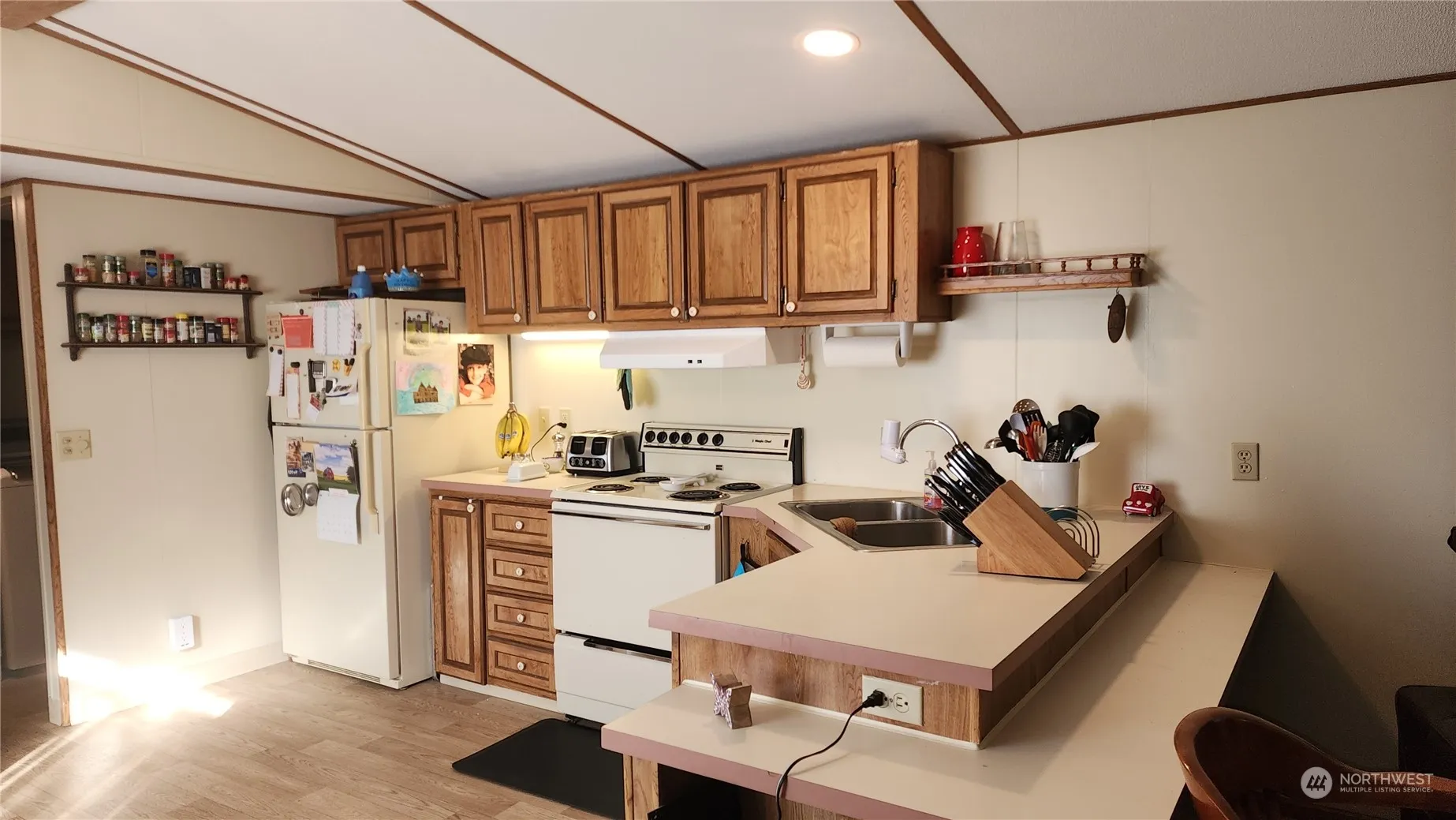 Newer flooring and paint, lighting and a brand new heat pump in this well kept home! Spacious living room with a separate dining room area and a kitchen that has loads of cabinets for storage. Kitchen comes with all the appliances plus the sale includes the washer and dryer too! This 3 bedroom 2 bath home has a lot to offer. Located in a 55+ cozy community, this home offers a large deck for entertaining and a fully fenced yard along with a easy access to the mailboxes. RV parking available within the park. Close to amenities, freeway access just 2 minutes away and walking path near by. Schedule your tour today!