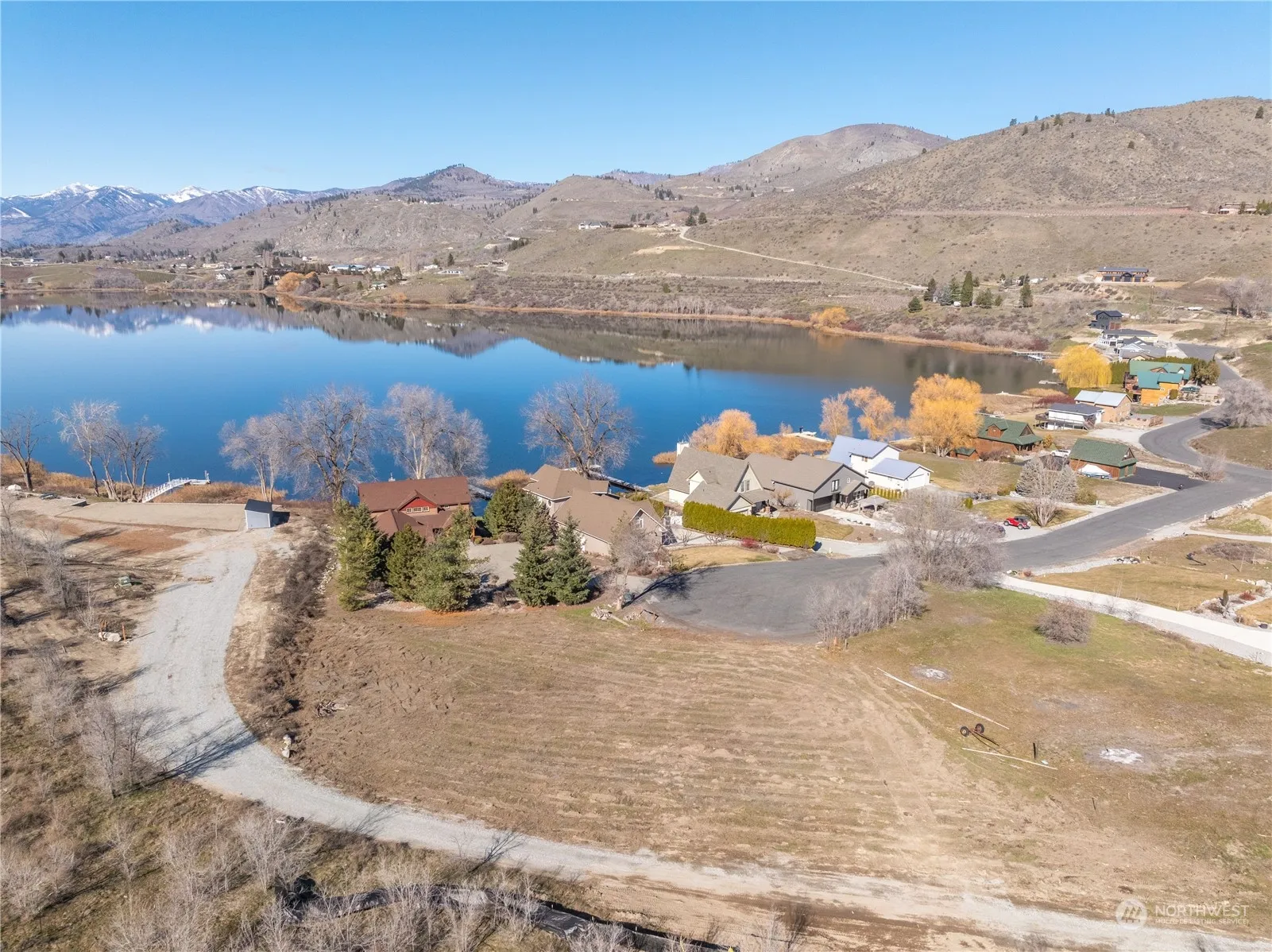 Roses Lake view lot with 1/3 acre community waterfront shared by only 6 homes. Enjoy waterfront without the taxes! This one of a kind lot offers beautiful mountain and spectacular lake views. Easy lake access allowing you to enjoy the lake, boat launch and beach area. Large .40 acre lot with water, power & irrigation all available. Please see recent 4 bedroom perk test from Tower Designs. Expanded building opportunities with access from both Roses Lake Lane cul-de-sac as well as Goat Trail Lane. Conveniently located close to downtown Manson. Nothing like this on the market! Recorded plat allows for future shared 6 slip dock. Seller will consider owner contract with large down payment.