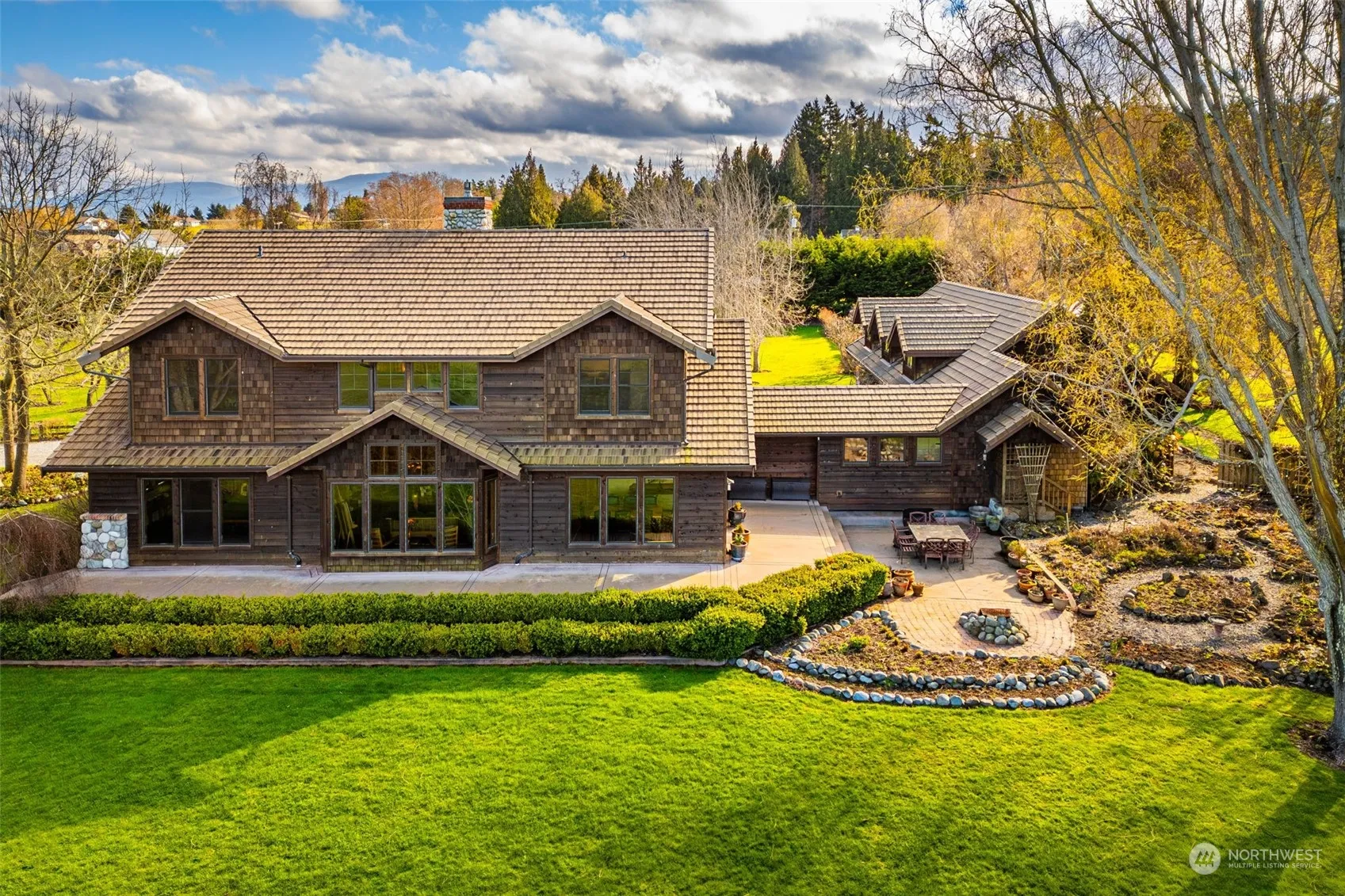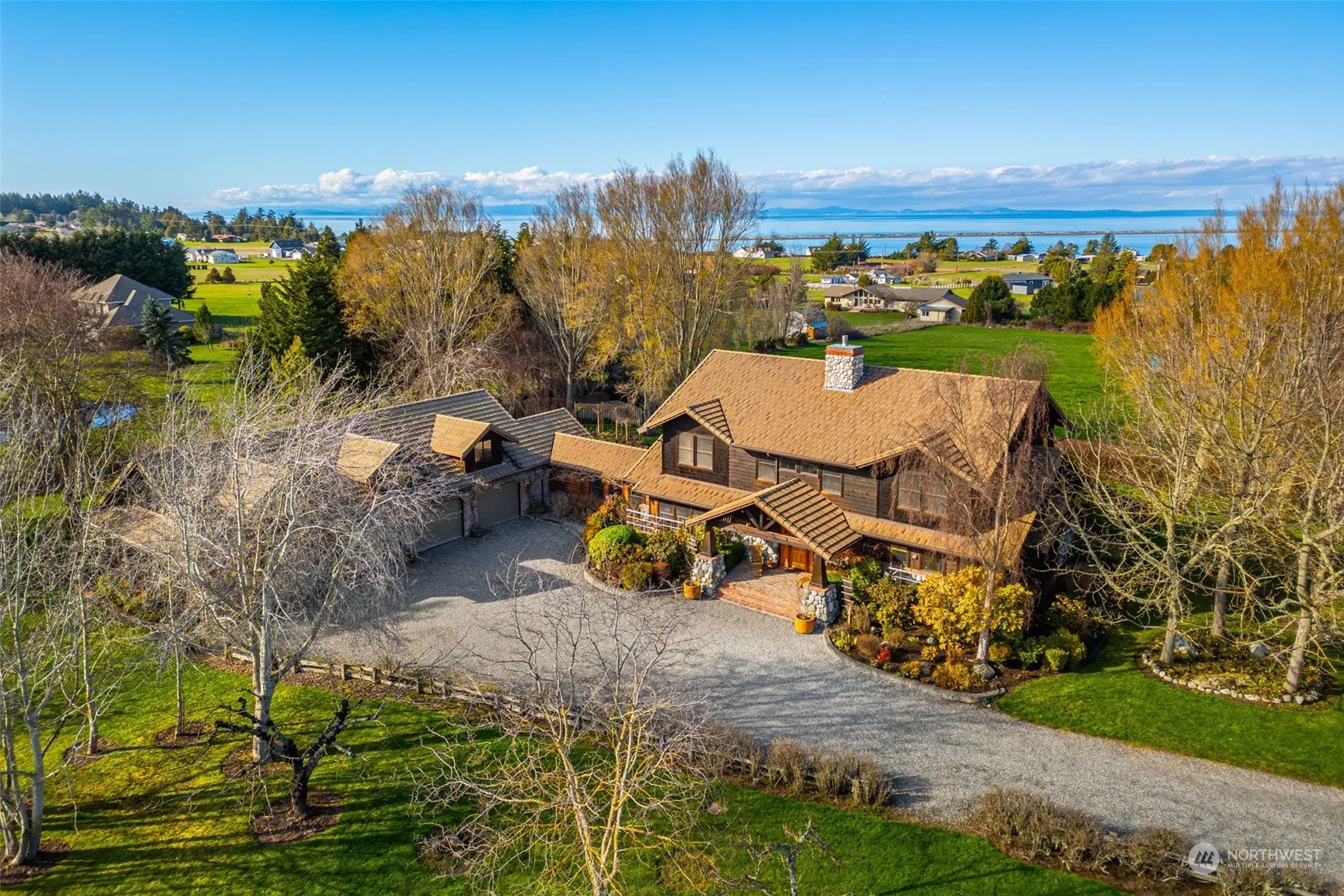 Indulge in estate living at its finest! This sprawling residence boasts breathtaking San Juan views & exquisite garden beds, orchard & greenhouse. Perfect for multigenerational living, offering private entrances, kitchens, & ensuites. Enjoy mesmerizing water views from every room, complemented by warm wood interiors & a stunning river rock fireplace. The primary suite features a spacious ensuite & closet, along with captivating water vistas. Two guest rooms with private baths & San Juan views offer luxury and comfort. The chef’s kitchen is a culinary delight with bar seating and a five-star 6-burner stove. Additionally, a 2-stall barn is perfect for horses or hobby farming. Conveniently located minutes from shopping, restaurants, and Hwy.