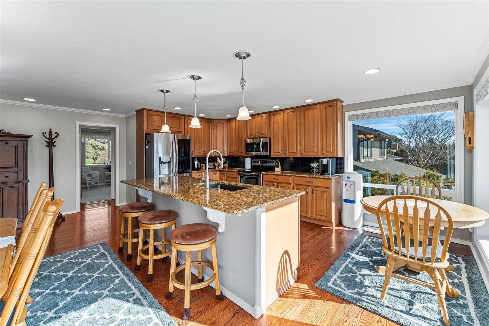 Beautifully remodeled 2 story home at Dungeness Golf Course. Home as spectacular Olympic Mountain views at the end of a cul-de-sac. Spacious open floor plan w/ 3-bedrooms & 1.75 bath upstairs & 1-bedroom with 3/4 bath downstairs. Total of 4 bedrooms 2.75 baths. Large kitchen w/stainless appliances, granite countertops & breakfast bar. Soak in the “Hot Springs” salt-water hot tub off primary bed overlooking 5th fairway. Professional landscaping, drip irrigation, sprinkler sys, pond w/ waterfall, storage shed & backyard patio area/set perfect for entertaining. 2-car garage, storage & driveway suitable for RV parking. Over $125,000 in upgrades over past 5 years incl 3 remodeled bath, furnace, heat pump, H20 heater & siding. Must see this home!