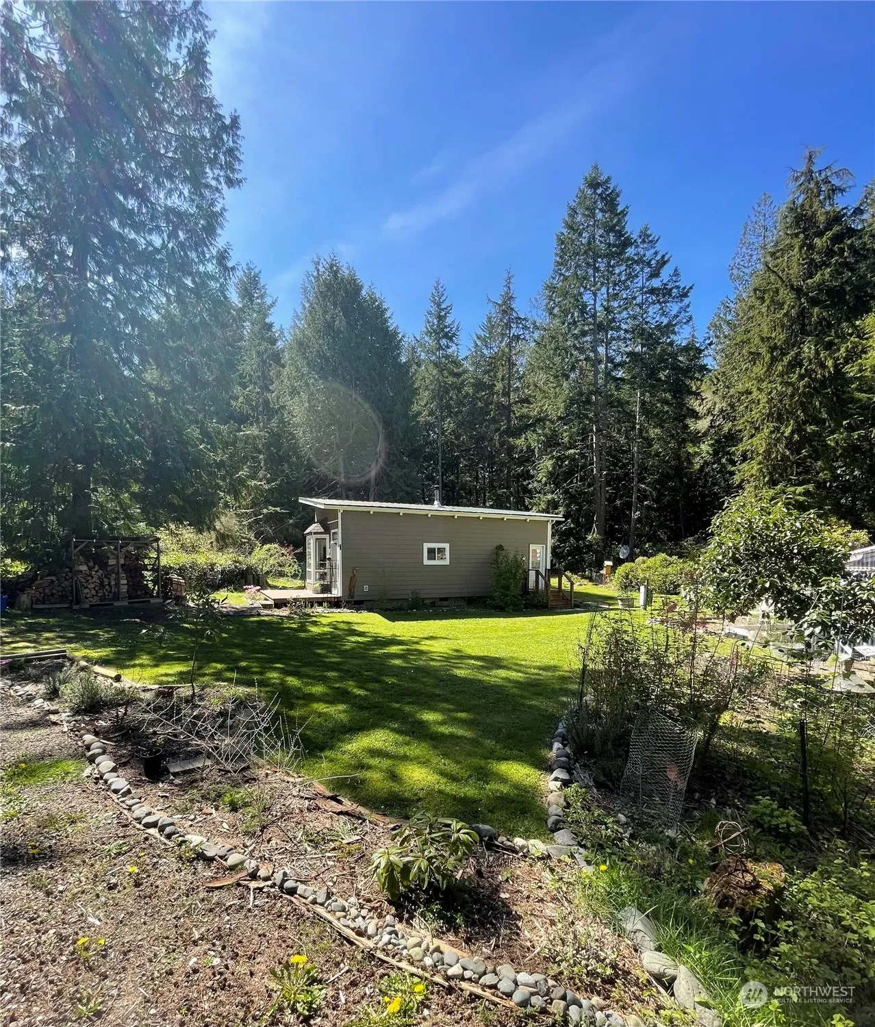 Cozy charmer in your own private oasis! This adorable cottage features a vaulted living room with woodstove and ductless heat pump. The efficient kitchen leads down the hall to the laundry room and bathroom. The upper level is a small bedroom loft. Outdoor amenities include an RV hookup, two sheds, a greenhouse, and a detached one-car garage with carport. Very private location with raised garden beds and an emphasis on native plant landscaping. This property is adjacent to Miller Peninsula State Park where you’ll enjoy the miles of trails and scenic vistas. The Sunshine Acres neighborhood provides access to a community beach and is conveniently located between Sequim and Port Townsend. Many fantastic features here – don’t miss this one!