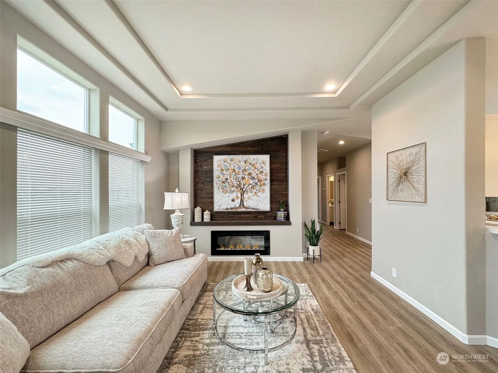 Sunset Bay-Stunning Mountain View home with spacious kitchen, SS appliances, island w/quartz & upgraded pendant lights, tile backsplash, lofted ceiling with horizon windows. Living room boasts tower dormer, coffered ceiling & horizon windows & entertainment wall with electric fireplace. Luxury primary bath with huge 80″ shower, tile shower w/interior recessed niche & added lighting. Experience quality living in Lavender Meadows, a private, pet friendly, 55+ community located in beautiful downtown Sequim. Residents enjoy miles of level interior sidewalks, pickle ball courts, horseshoe pits, bocce ball, pocket parks, dog parks, and a clubhouse. Beautifully landscaped with irrigation and 2-car garage. $4,000 buyer BONUS at time of closing!