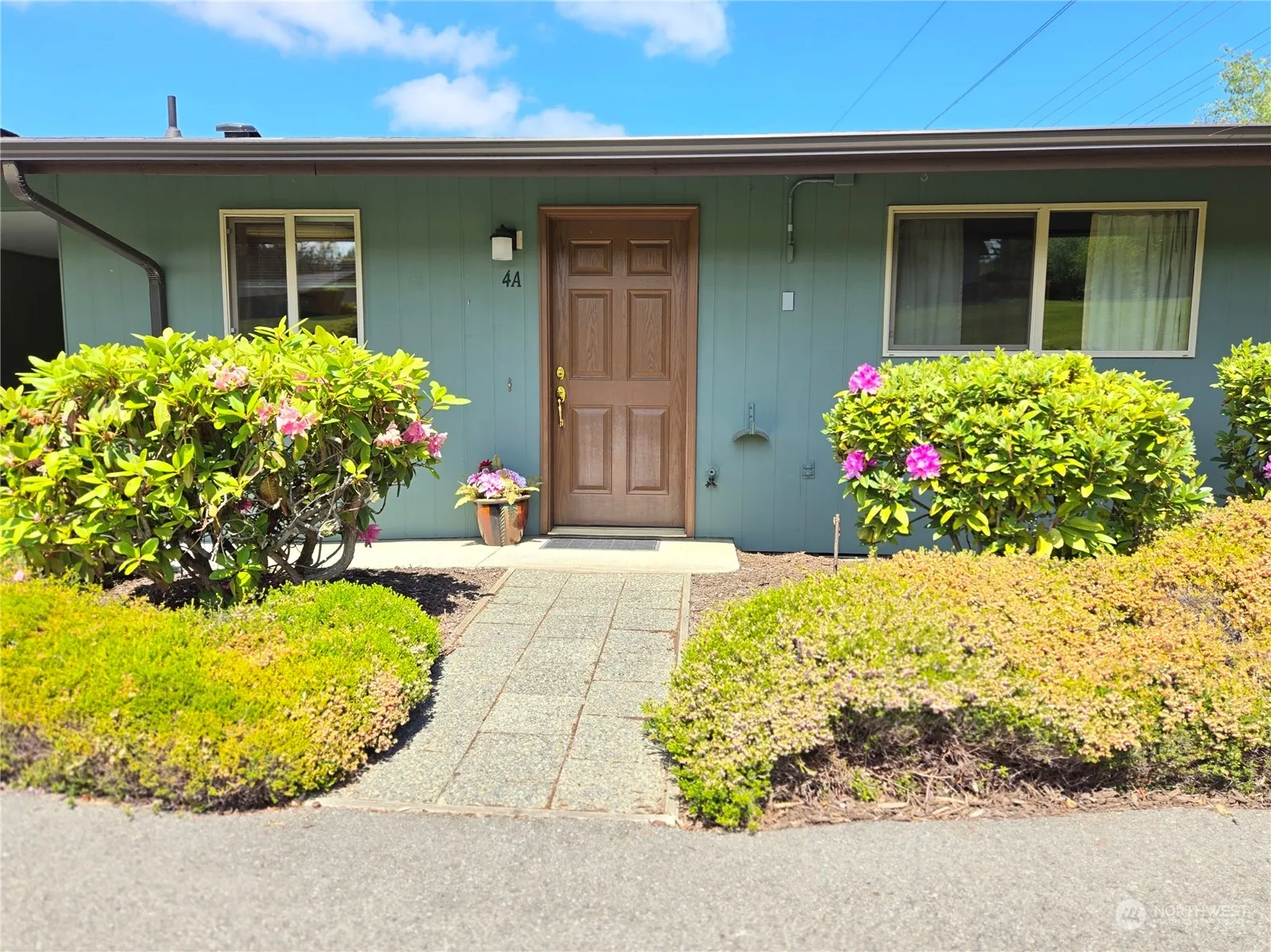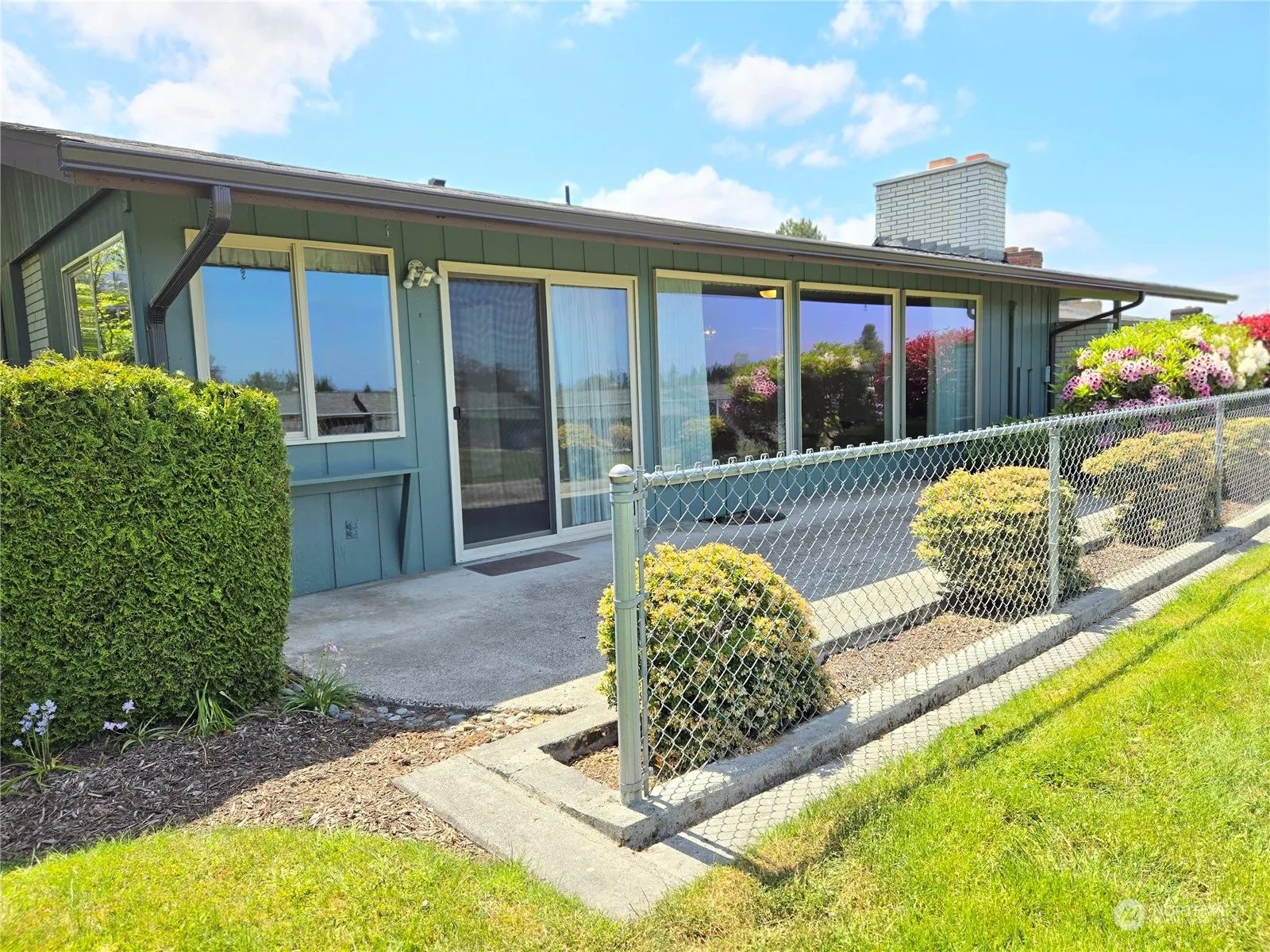 Bright, beautifully kept, large end unit, in Dominion Terrace 55+ community. Custom oak cabinetry and open shelves. Remodeled main bath with roomy walk in shower. Updated kitchen cabinetry, with newer appliances. Addition of a bright den for craft room or office. On a clear day you can see large ships in the Strait through expansive living room windows (remote control window treatment). HOA fee includes; Clubhouse social events, a heated pool, hot tub, sauna, library, gym equip., dance floor & full kitchen. On property woodshop, garden, pond stocked with trout, power, water, sewer, trash, roof, exterior/interior painting, maintenance & insurance. New interior painting included for buyer. Must call agent to show while pending.