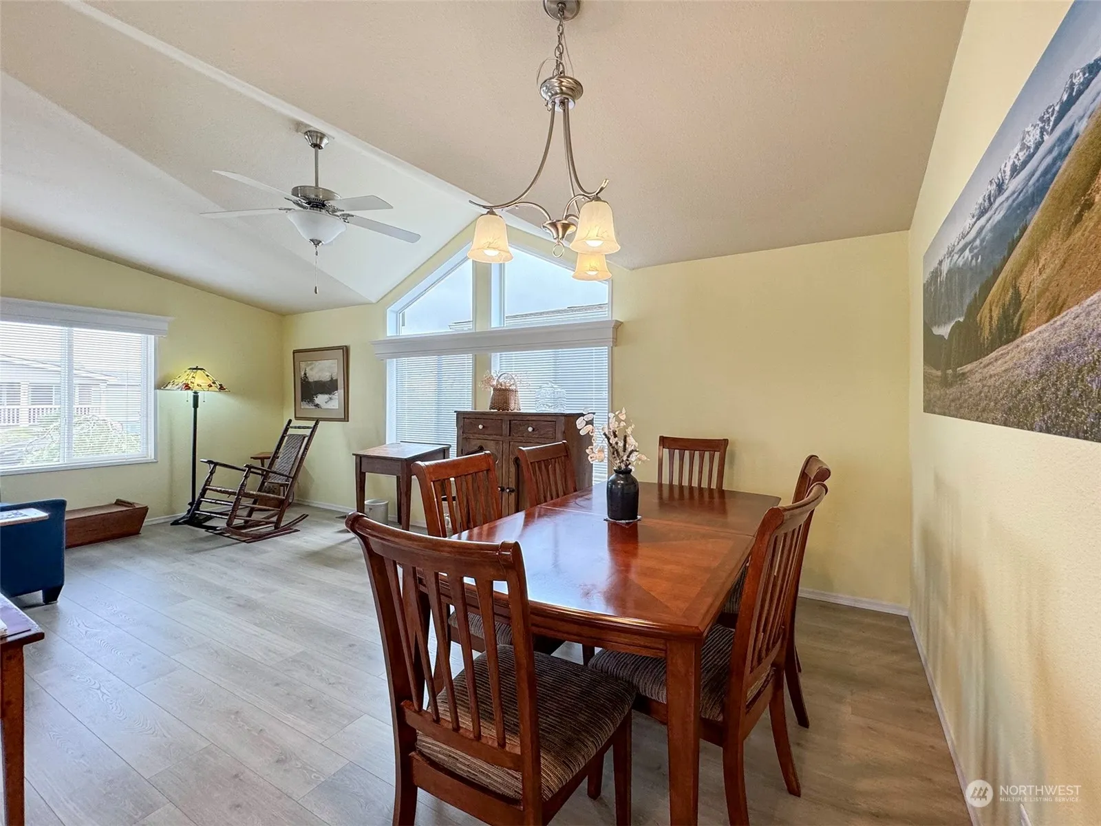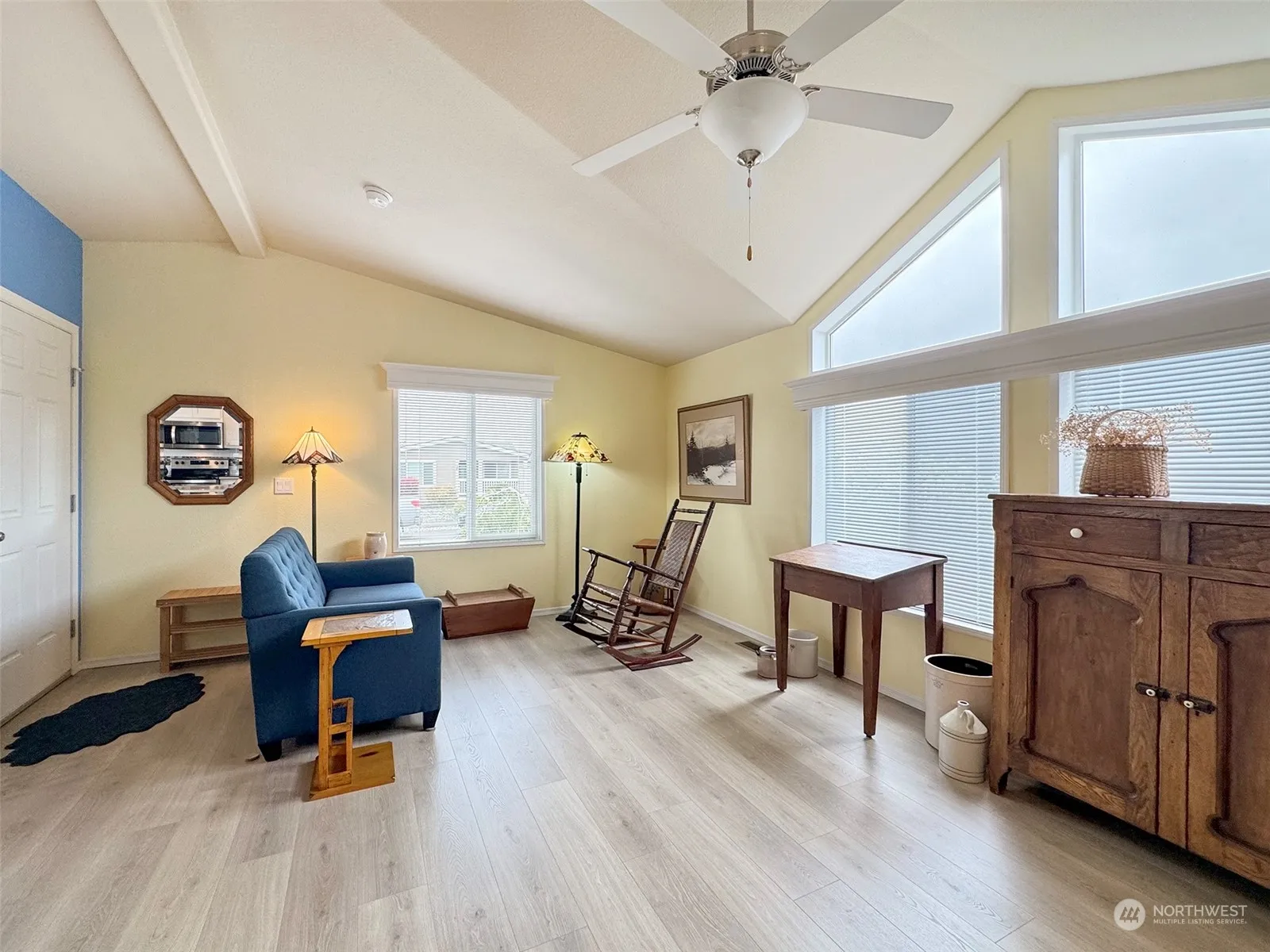 Easy living in a 55+ community less than a mile from Sequim shopping and 100 yds from the Olympic Discovery Trail. Professionally landscaped for low maintenance with an irrigation system. Currently the largest bedroom is a Family Room which opens onto a West-facing full covered porch & fully fenced private back yard with trees & shrubs on the perimeter. The yard is low maintenance pet grass suitable for pets, play and fun get togethers. Kitchen appliances are stainless Whirlpool, the cupboards are white & there’s plenty of counter space. A Bosch heat pump provides heating & cooling. The floor is laminate & the oversized garage has room for extra storage. It’s just a few minutes from the Y, medical offices, restaurants & other services.