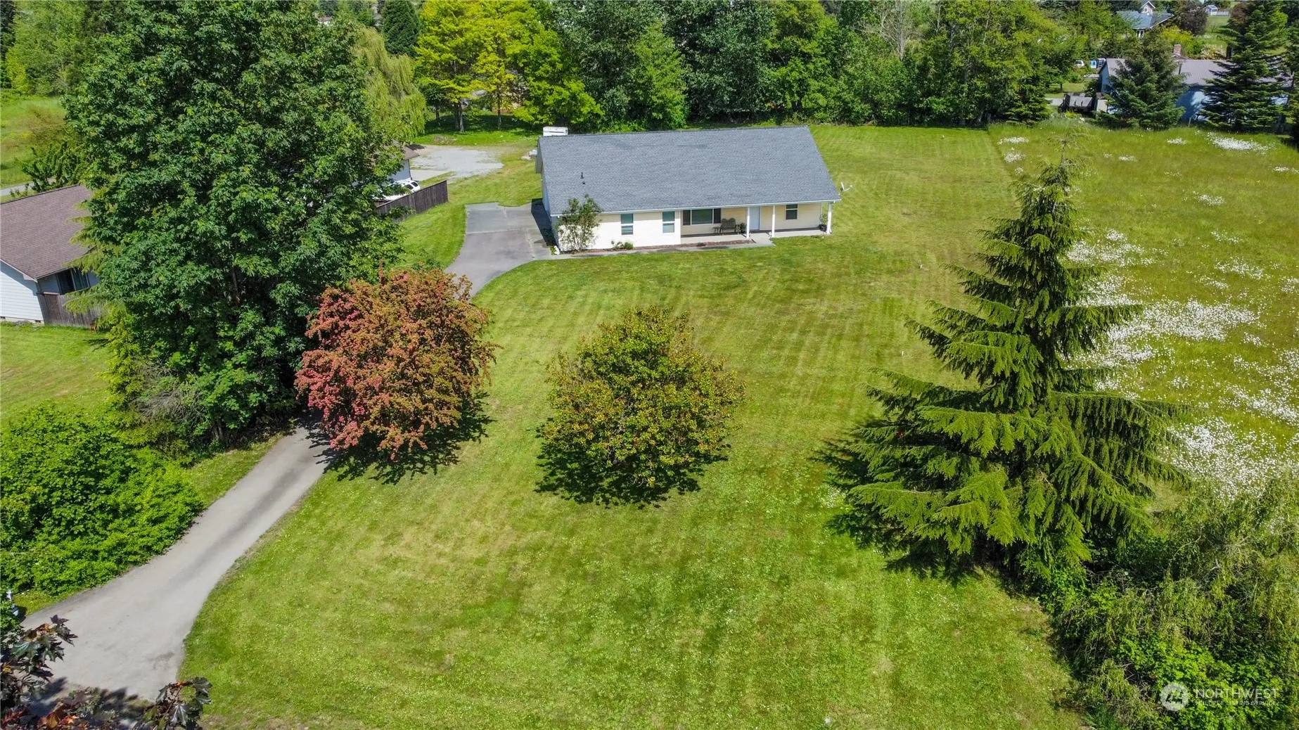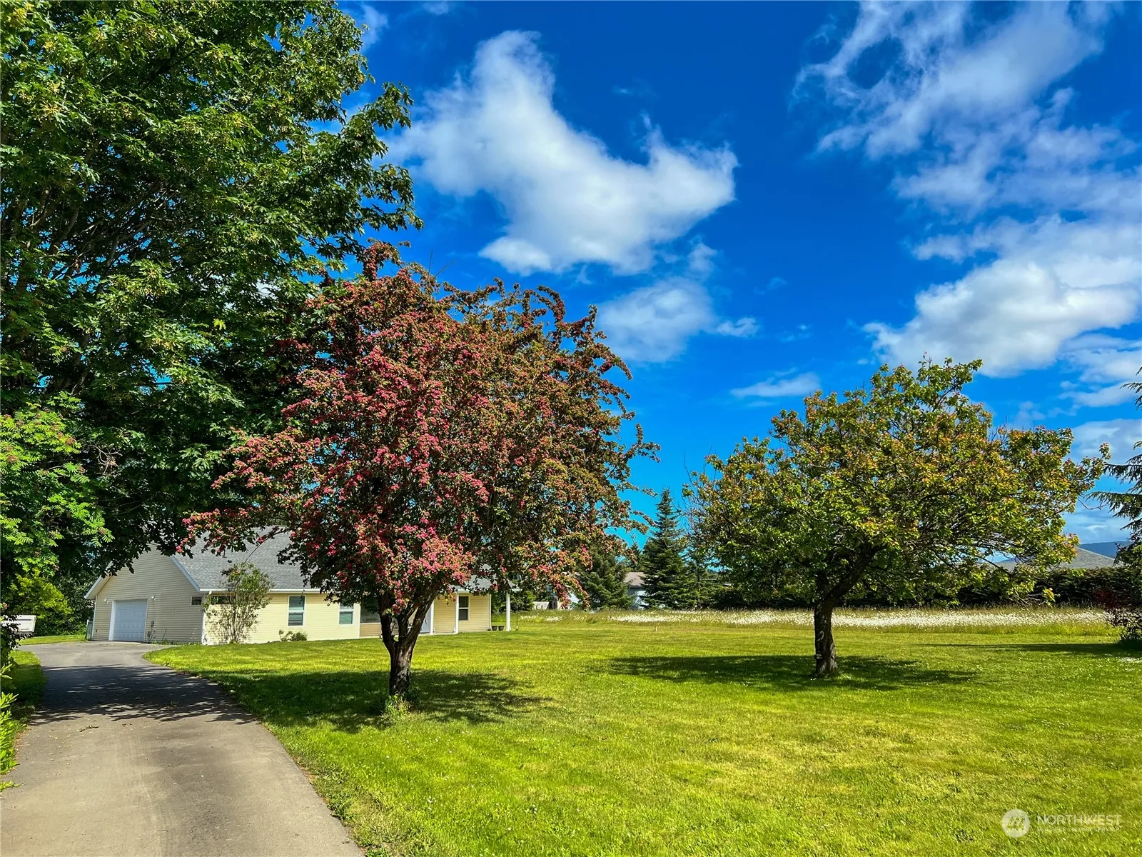 Sequim, Washington has many features, including a small-town feel, outdoor activities, and agricultural heritage. It is also known as the “Banana Belt” because of the dry climate which results in approximately 300 days of sunshine. Sequim is also known for its many Lavender farms. Walk into this 3 bedroom rambler which features an open and spacious feeling with vaulted ceilings, large light-filled windows and a large and welcoming kitchen. The house sits on a full flat acre giving you many possibilities for adding gardens, fruit trees and maybe your favorite animals. The attached 2-plus car garage offers plenty of space for a workbench and extra storage. The partially covered back patio is the best place for your morning coffee.