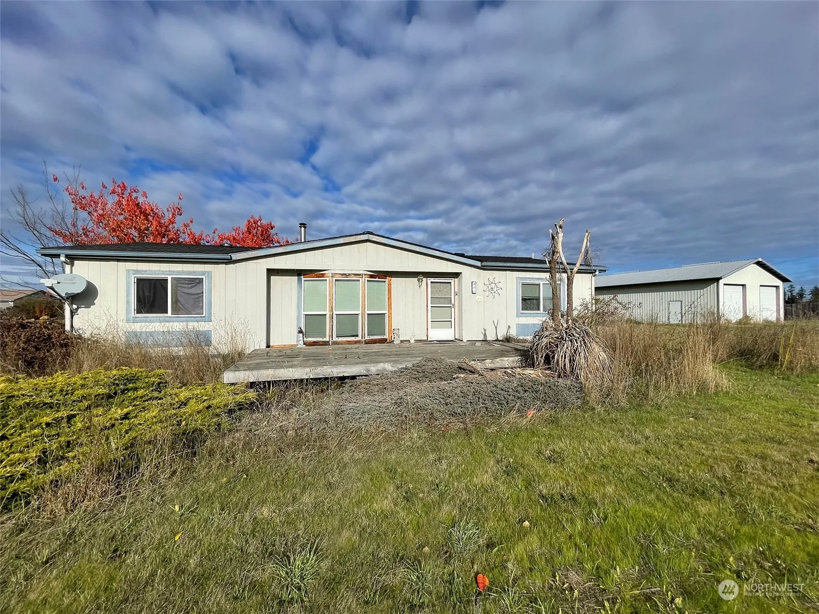 Priced to sell! Located just a few minutes west of Sequim in the Carlsborg area on a quiet dead-end road. Level, 1.46 acres with plenty of sun for your garden and unobstructed Mountain views. 2 car-oversized (768 square feet), insulated detached garage with a storage loft and a workbench. Carport off of the garage is a perfect spot for garden tools and your riding lawn mower. 1,440 square foot pole building with extra tall doors for a trailer, large truck or an RV plus a storage loft. 3 Bedroom and 2 bathroom manufactured home will need some TLC. The roof on the home is approximately 3 years old. Buyer responsible for removing personal property & trash as this will be sold as is, where is. PUD power, individual well & private septic system.