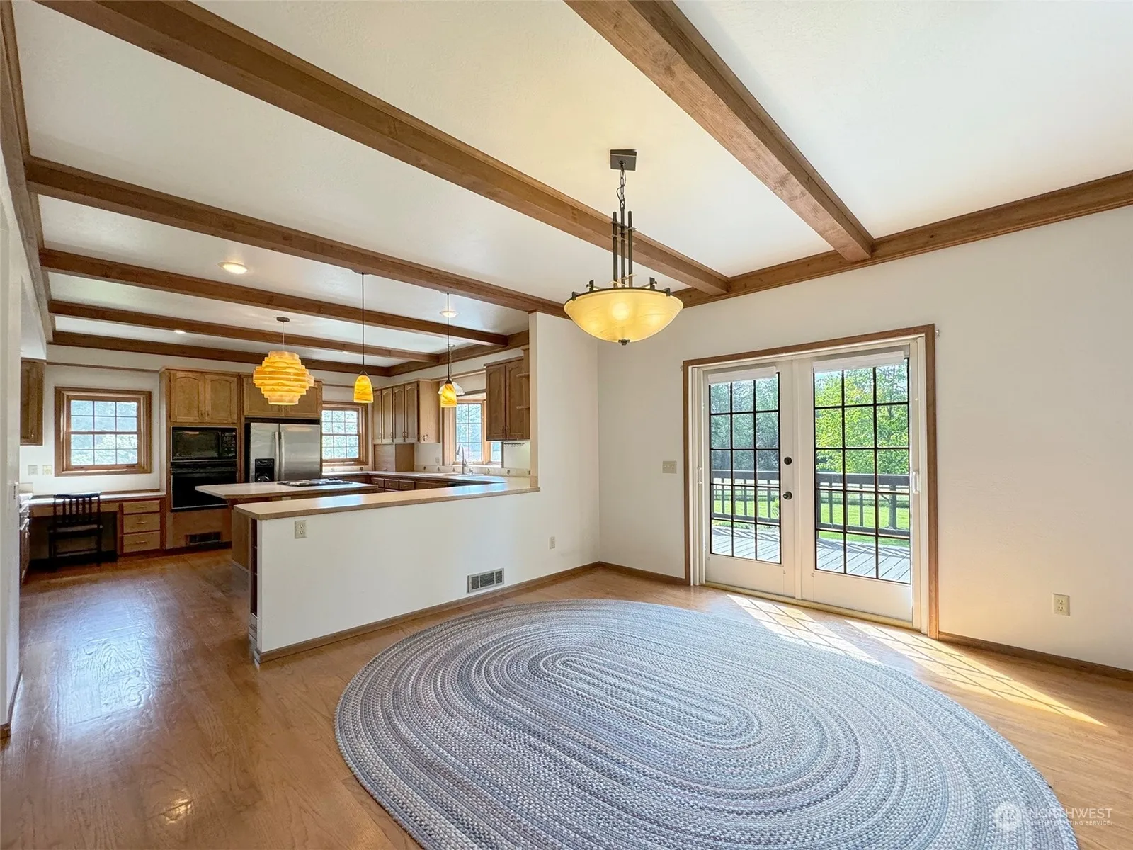 Discover the epitome of rural luxury with this exquisite 3-bedroom, 2.bathroom home nestled on a sprawling 15-acre estate. This exceptional property offers an idyllic retreat for horse enthusiasts and those seeking a serene lifestyle away from the hustle and bustle of city life. Step into a welcoming open-concept living space featuring a cozy wood stove and large windows that bathe the rooms in natural light, offering picturesque views of your expansive property. The heart of the home boasts a fully-equipped kitchen, walk-in pantry, with large island perfect for entertaining. Enjoy the convenience of a dedicated laundry room with ample storage throughout. 2 Stall horse barn w/ tack room, additional pole barn, and fully fenced acreage await.