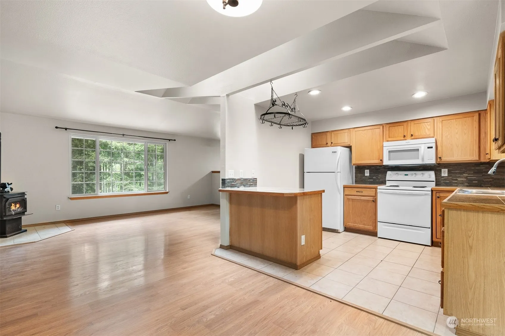 Make yourself at home within the secure, gated community of Clearwood. A favorite split-entry floor plan. Soaring vaulted ceilings w/skylights grace the freshly painted open concept living space w/free-standing wood stove providing radiant head. Granite tile counters in Kitchen w/peninsular eating bar (all appliances stay!). Primary Suite boasts walk-in closet & Jack’n’Jill bthrm. No carpet thru-out! Fisher-people rejoice: minutes frm Sunset Beach w/boat ramp access to stocked Clear Lake. Oh, & of course covered picnic areas w/BBQs, designated swimming spots, & hiking trail leading around the lake. With two gated entrances & no manufactured homes, this community is a step-above. Close to Lackamas Elementary School & an easy commute to JBLM.