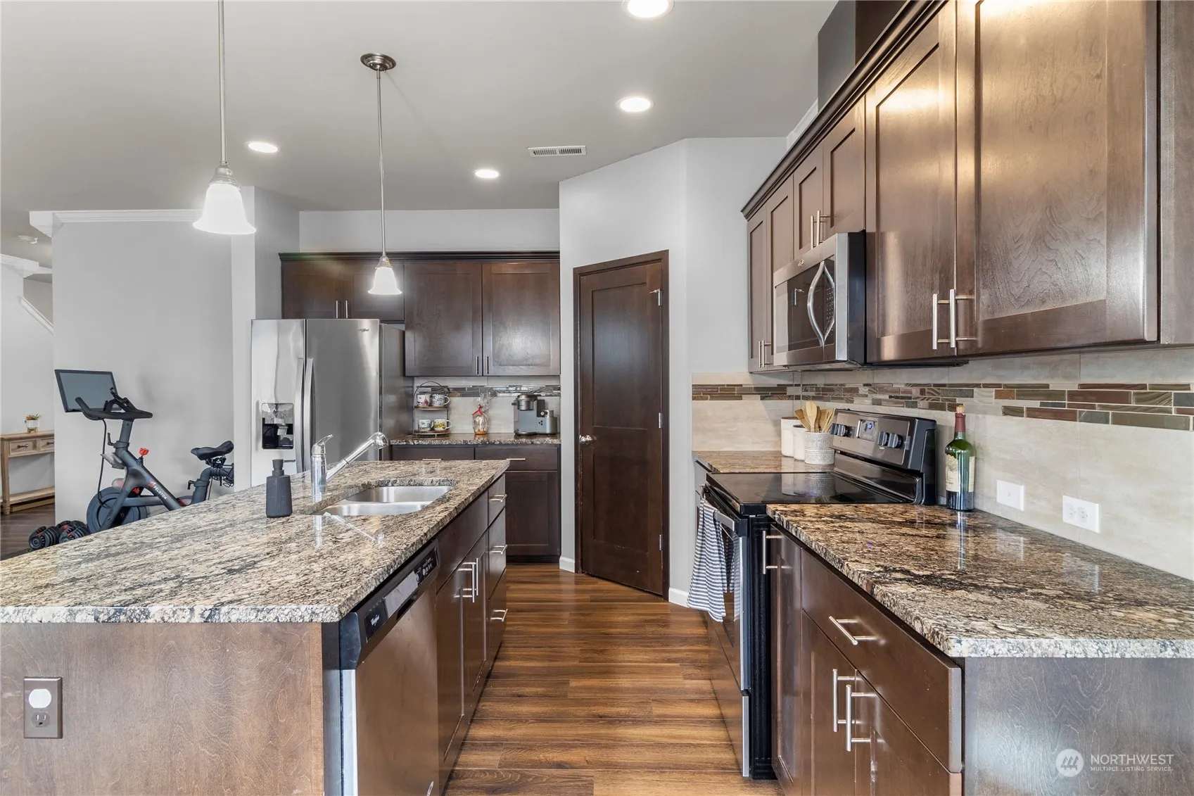 Welcome to Tahoma Terra! This Gorgeous home has THREE floors, Main floor has gourmet kitchen, with stainless steel appliances, granite countertops, formal dining area, living area with gas fireplace, Second floor has two bedrooms/full bath PLUS primary bedroom, spacious bathroom with soaking tub, stand up shower and large walk in closet and laundry room! Third floor has a large bonus room, Fourth bedroom and Full bathroom! Perfect for guests visiting, mother in law suite, or family room. Dont miss this one!