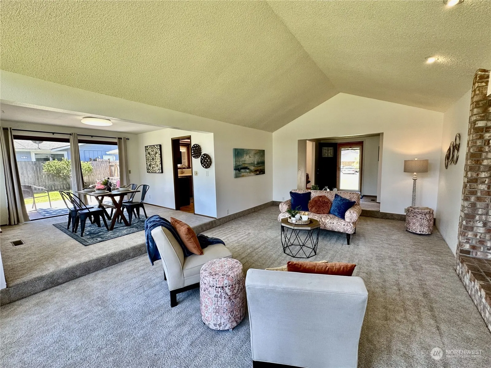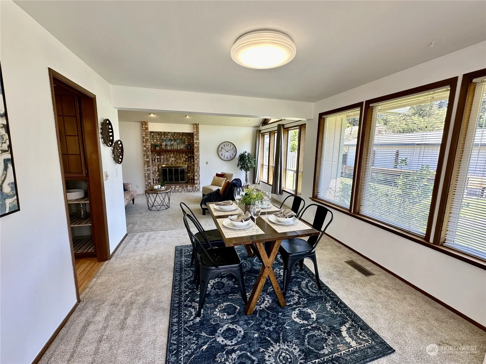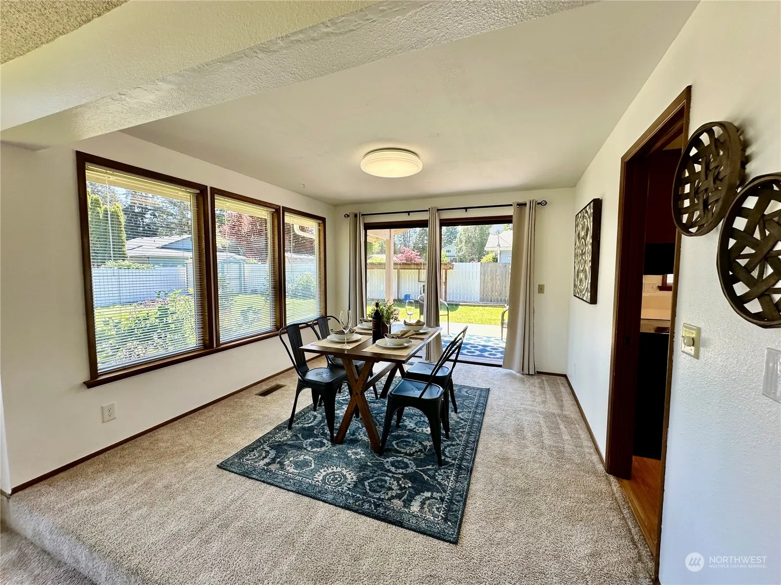 Wonderful rambler on ample lot with fenced rear yard and covered deck. Additional shop with power + shed in rear yard. Home offers 3 bedrooms & 1.75 baths. Large, vaulted living room greets guests with wall of windows & brick fireplace, open to dining room with slider to rear yard. Kitchen has a nook with access to rear deck and is open to family room with easy access to dining room & utility room. Generous primary with access to second deck, .75 bath and two large closets. Laminate flooring in entry, kitchen, nook & family area. Lots of storage, BRAND NEW ROOF & GUTTERS, vinyl windows, fresh interior paint, newer composite decking and heat pump. Convenient location, nice park and playground, community pool for summer fun.