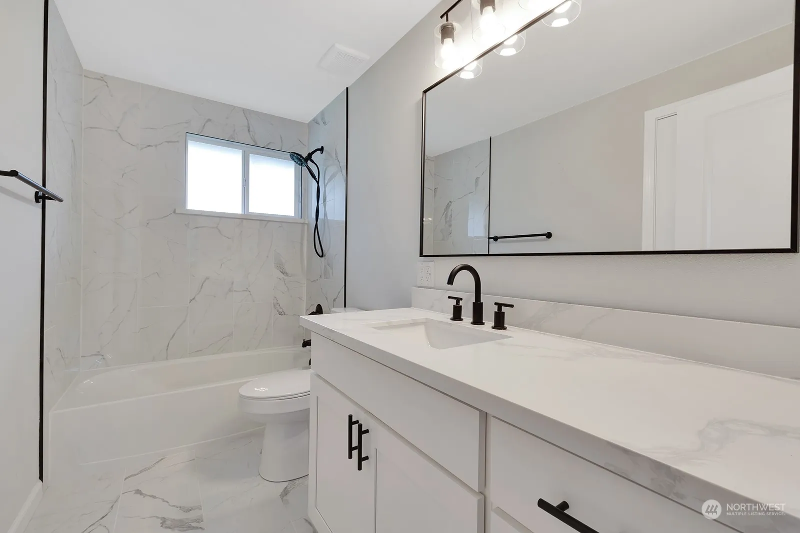 Welcome home to this beautiful 3 bed 1 bath home on a very private dead end street close to light rail station! Brand new flooring greets you as you enter the home & leads you throughout this well laid out rambler. The lovely kitchen boasts new shaker cabinets, quartz counters, tile backsplash & SS appliances! Nestled in between all 3 bedrooms is a full bath that has been tastefully updated w/ tile shower surround, new vanity w/quartz counters & all new fixtures/paint. Just off of dining room is a spacious family room which could also double as a home office! The HUGE backyard is a must see as it has an oversized covered deck & is fully enclosed by new fence. Large gate opens for RV parking also. Brand new cement Hardie Board siding around!