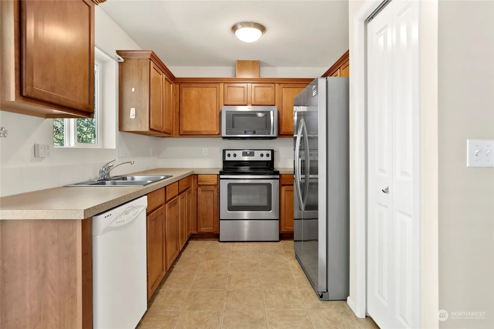 Great low maintenance townhome in convenient Lacey neighborhood, The Pointe. Two story 2 bed, 2.5 bath, 1,283 sqft, large fully fenced back patio w/quiet greenbelt & front yard maintained by HOA. Features include great room, kitchen w/maple cabinets & crown molding, primary bedroom has 3/4 bath & large closet. All appliances included. Chehalis Western Trail head just a short distance from front door and schools, shopping & I-5 access for JBLM.