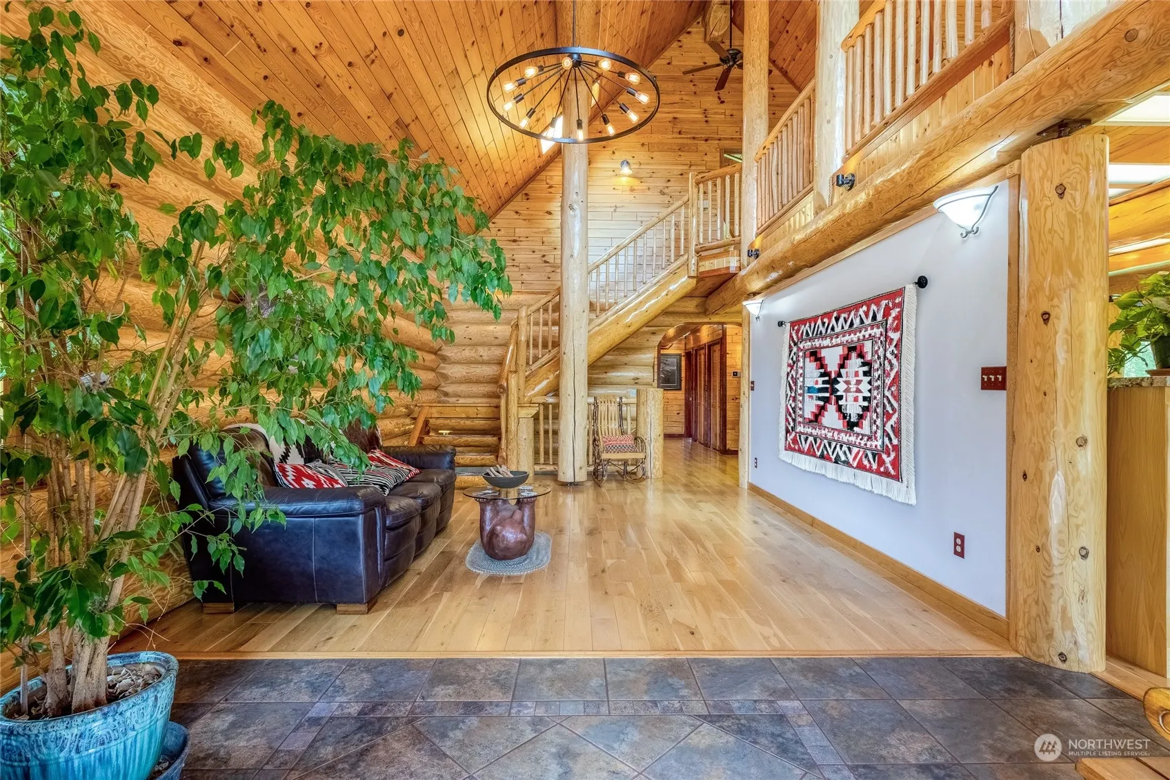 Custom 4,350 Sq Ft.+-, Handcrafted Scribe Fit Douglas Fir Log Cabin Home. Privately situated on 9.19 acres bordered to the North by over a quarter mile of the Coppei Creek. Minutes to downtown Waitsburg. This property has a welcoming ambiance of relaxed sophistication & extraordinary architectural design. Gracious entry, soaring 25′ cathedral ceilings open to expansive great room showcasing walls of glass opening onto the patio of this 2-story home. Unique lighting throughout highlighting the beauty of the wood. Gourmet culinary center, Chef’s delight! Primary loft suite with spacious sitting room/home office. Main floor 2 bedrooms/2 bath. Lower level walkout, ready for your creative ideas! SHOP/ADU ready, W/1 BED,1 BATH, KITCHEN & LAUNDRY!