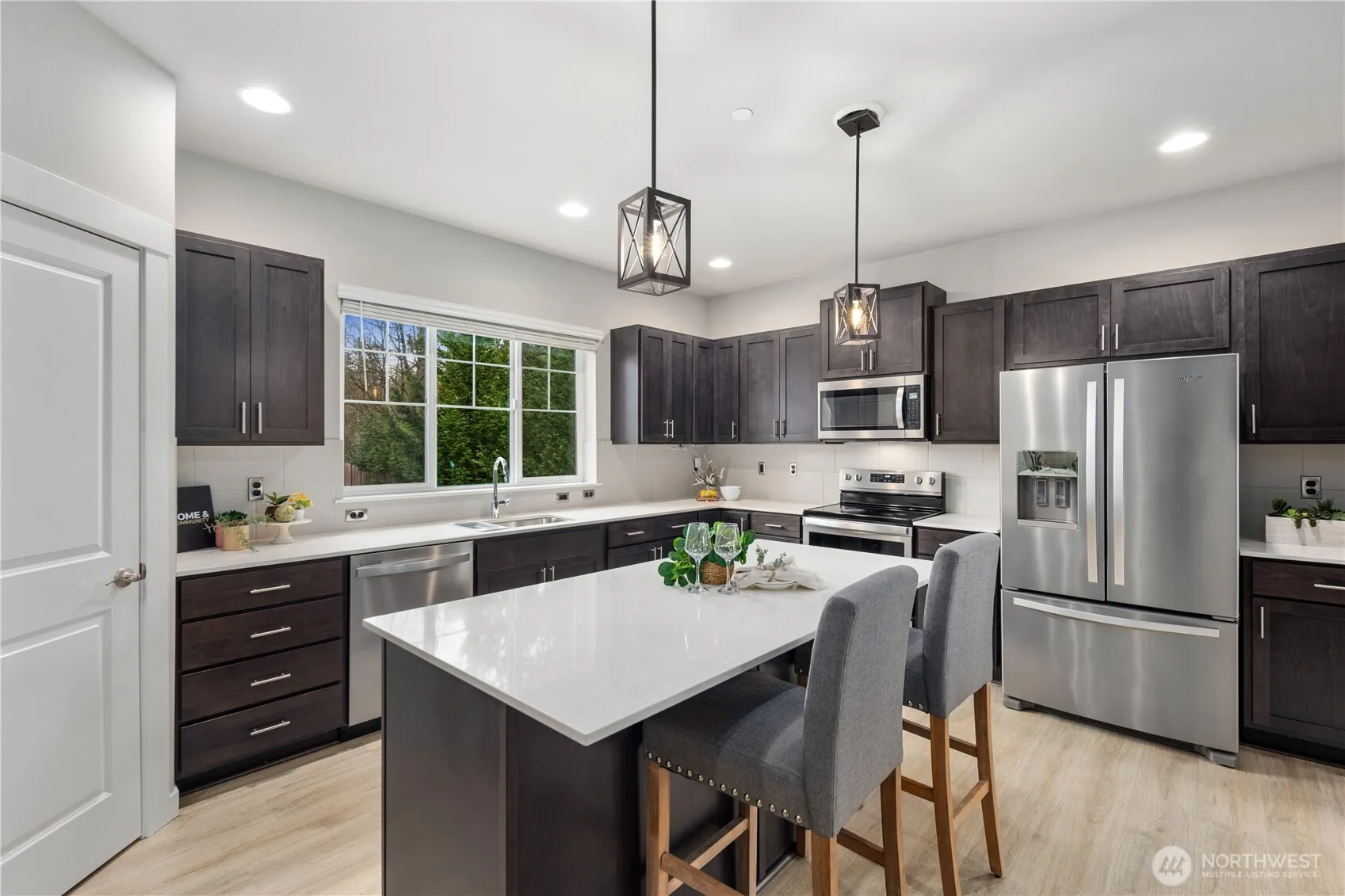Zoned for Woodside Elementary (rated 9) and Henry M. Jackson High School (rated 9), this home sits on a PREMIUM CORNER LOT W/PRIVACY in one of the most desirable pockets of the community—set on a quiet dead-end street with three-side open views and exceptional natural light with no neighboring building obstructions. Take in serene pond views from the deck and balcony, and enjoy an indoor dining area that keeps the outlook wide open with no visual blockers. Comfort and convenience shine through thoughtful upgrades, including ceiling fans in three bedrooms, custom designer closets in the primary suite and one guest bedroom, and an insulated garage finished with premium epoxy-coated flooring. Both the primary bath and an additional full bath feature bidet systems, with a heated seat in the primary for an extra touch of everyday luxury. Just minutes to Mill Creek Town Center for shopping, dining, and coffee, plus quick access to essentials like Safeway and Fred Meyer. Nearby parks and trail options—including the North Creek Trail—make it easy to step outside and recharge. PRE-INSPECTED!!