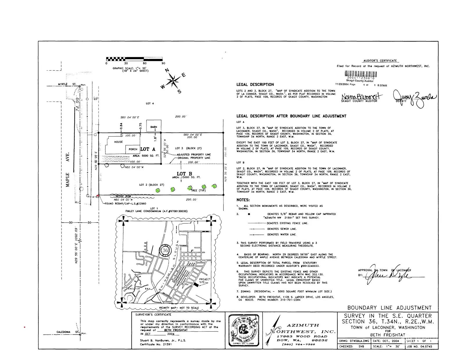 Multi or single family home building opportunity. Possible 4 units along 100′ east lot line can be built on this beautiful flat, partially cleared lot with mountain & farmland views in the historic waterfront community of La Conner. If the lot is subdivided, a single family home can be built in front and up to 4 units in back. If you are looking for elbow room, build your dream home and enjoy views of quiet farmland and foothills in the distance. Sewer stub for the property, electricity and water connections at street. See plat map attached and contact Michael Davolio- planner@townoflaconner.org for more info on possibilities. Buyer to verify all information.