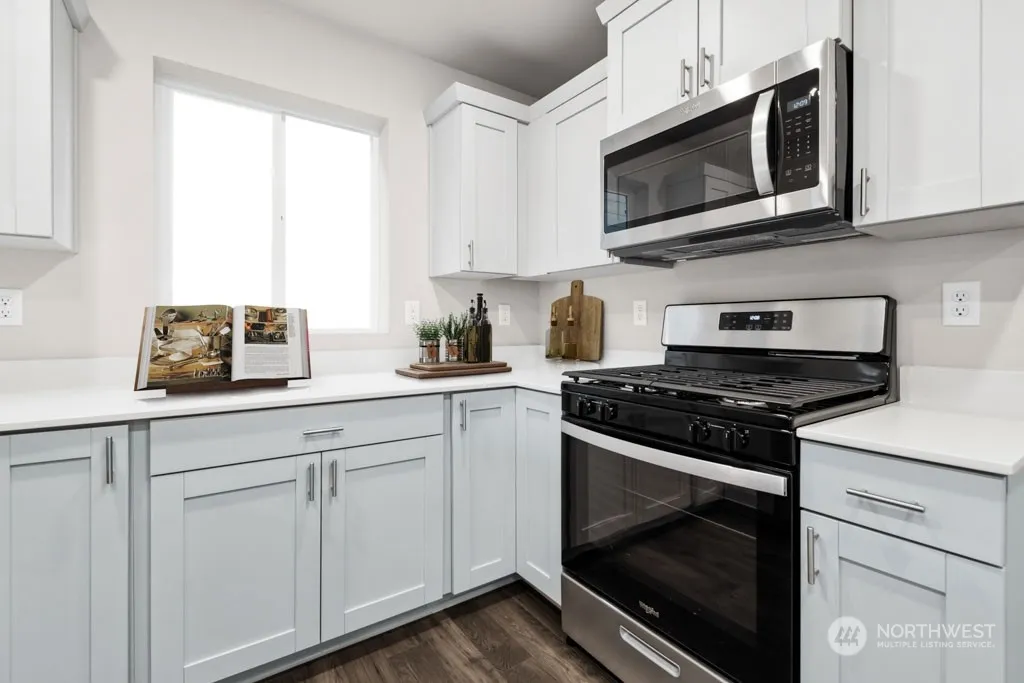 The LAST Taylor available that includes REFRIGERATOR, WASHER, DRYER & BLINDS! This cozy home welcomes you with natural lighting and an open design featuring a great room, kitchen w/ slab quartz counters, stainless appliances, gas range & light cabinets. Primary bedroom features a large walk-in closet and private bath with spacious glass shower and quartz countertops. 2 additional bedrooms at the back of the home, separated from the Primary. Central A/C and smart home features are included! Community has a fenced dog park, playground, and open spaces. Buyers must register their broker on first visit, including open houses. Comes w/ refrigerator, washer, dryer, AND blinds! LAST ONE!
