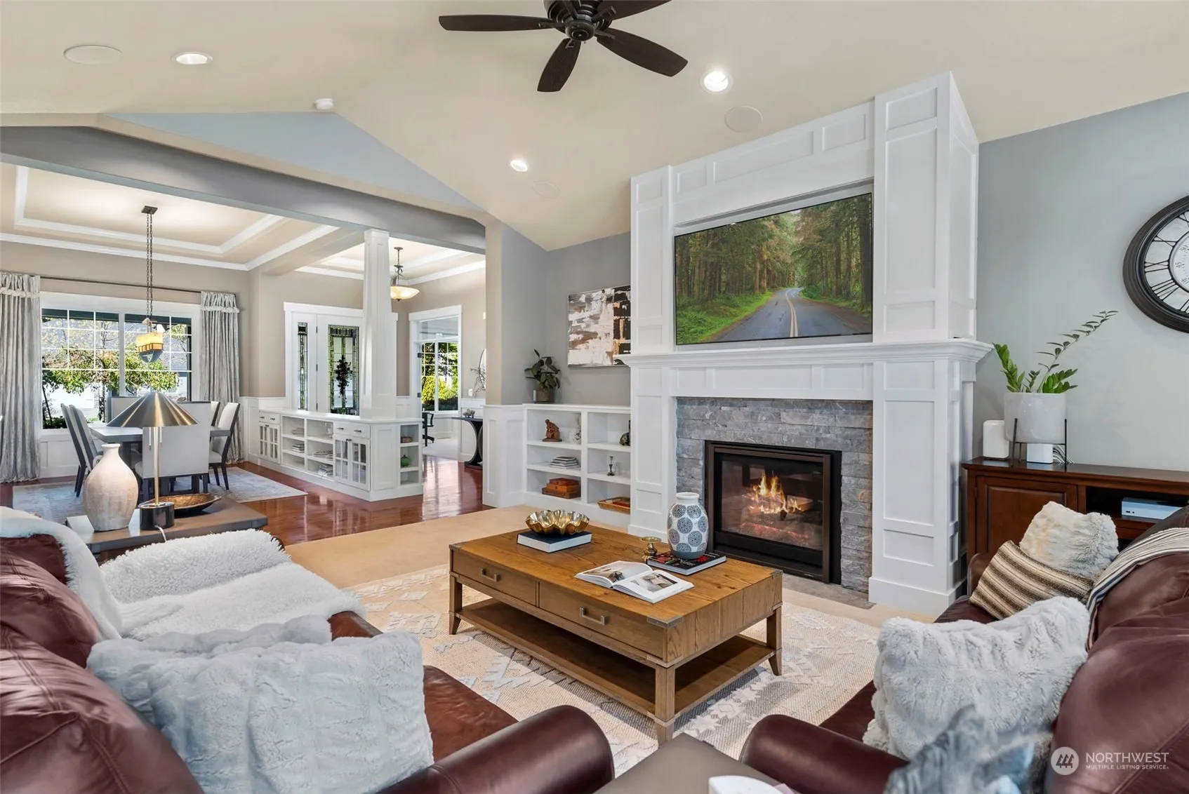 Welcome to your dream home in Campus Estates! With over $100k in lavish upgrades, this 5-bedroom + den beauty is bound to dazzle. Located just 9.5 miles from JBLM, this gem sits proudly on the 16th hole of the golf course – convenient and has the right amount of privacy. Every inch of this home exudes space and luxury. Upgraded open kitchen, gleaming hardwood floors, and a main floor primary suite with a 5-piece bath and dual walk-in closets. Upstairs, a spacious bedroom, full bath, and two huge versatile bonus/family rooms await. Step outside to find a covered patio, mature designed landscaping, and outdoor fireplace. Sidewalks in every direction, golf literally out your back door, and greenery everywhere you look–this home is spectacular!