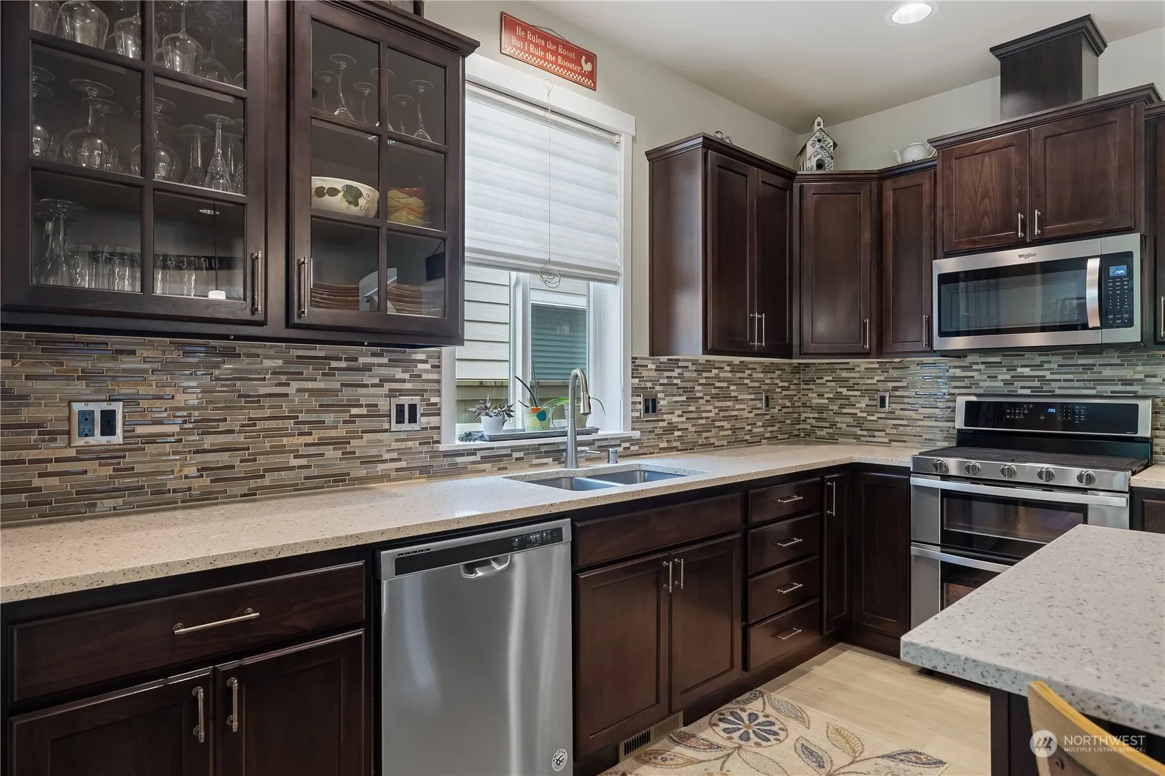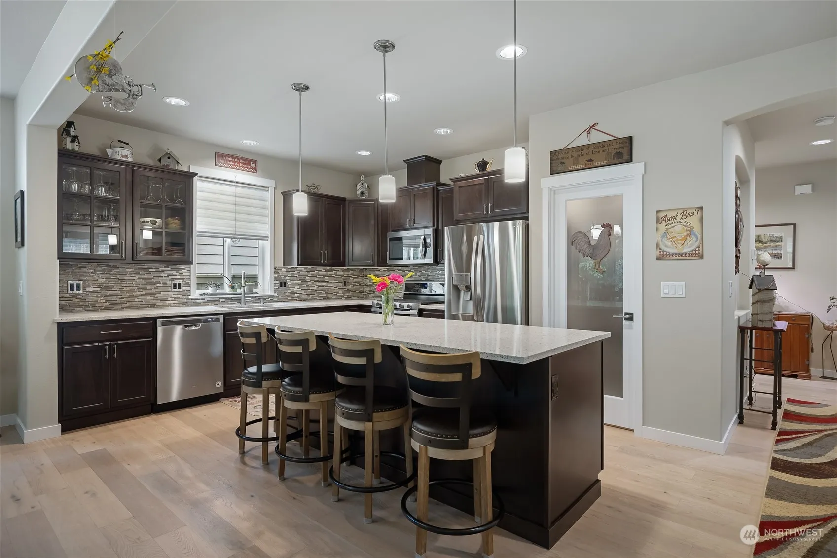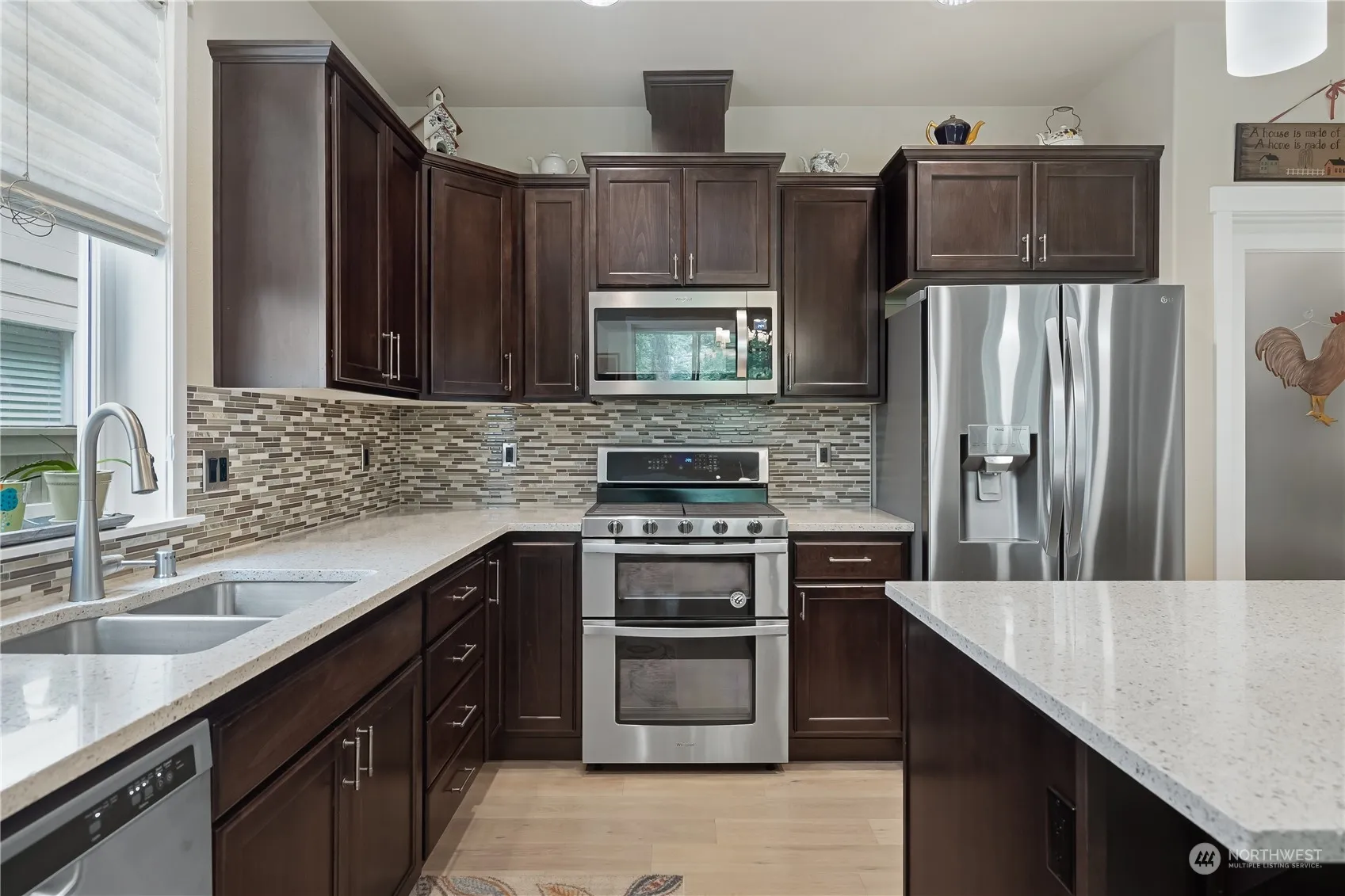 Charm and convenience come together in this lovely 5-bedroom home on Hawks Prairie golf course. As you step inside, you’ll be welcomed by an open-concept living space that seamlessly integrates a kitchen with soft-close cabinets, a dining area, an office with French doors, and a living room featuring a gas fireplace. This home has been upgraded for enhanced comfort and style. Outside, you can relax in the beautifully landscaped backyard oasis, complete with a covered porch and custom patio where you can admire stunning sunsets over the golf course’s 1st hole. This property is conveniently located near schools and amenities, with easy access to I-5 and JBLM. Don’t miss the opportunity to make this your dream home!