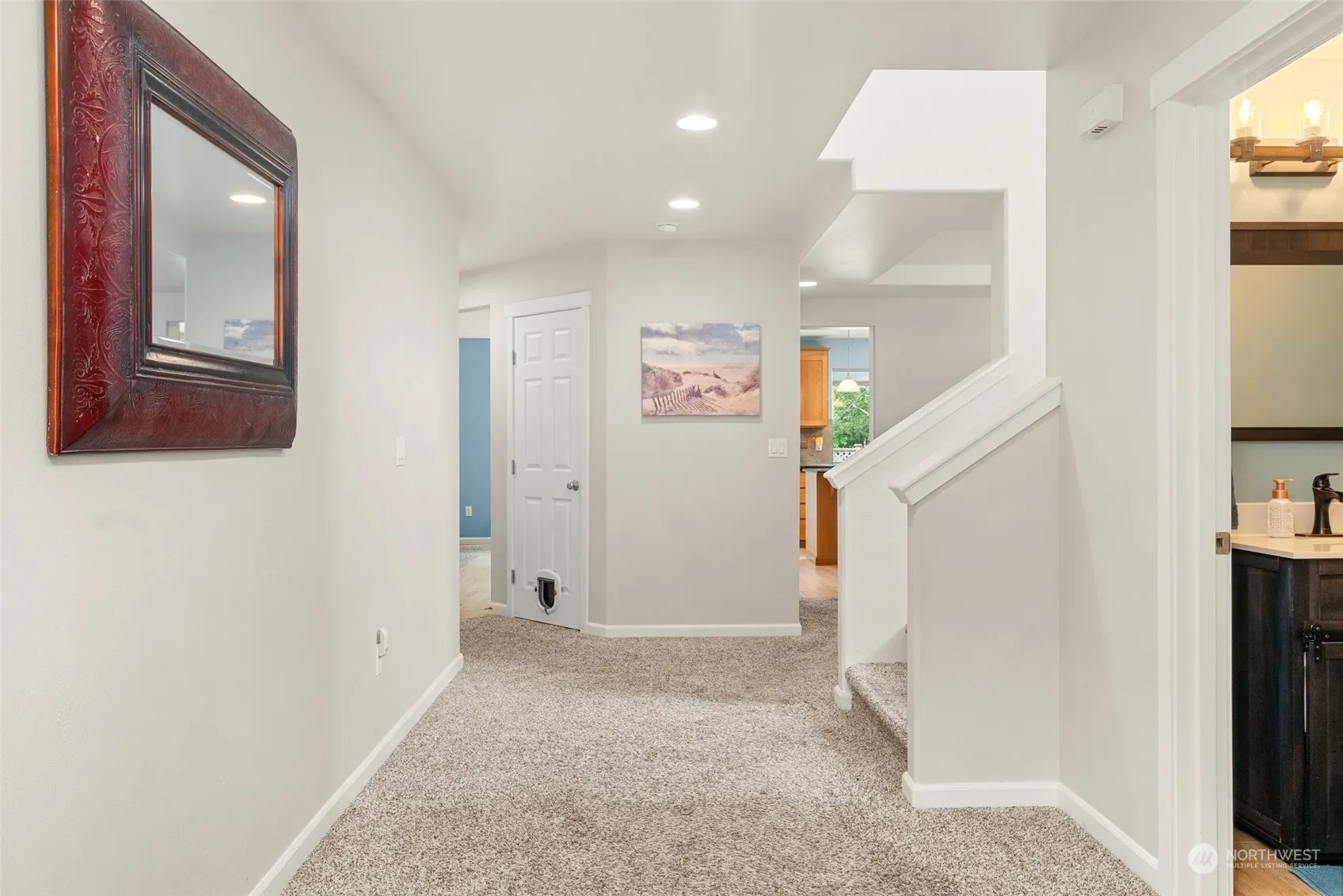 Large wonderfully cared for home in desirable Horizon Pointe! Spacious kitchen w/ slab granite breakfast bar island, stainless steel appliances, granite tile countertops, informal eating area, & slider to patio grilling! Large family room has cozy gas fireplace. Main floor also has bedroom/office, formal dining area, & upgraded 1/2 bath for guest convenience! Upstairs & off the large landing, you have 2 ample sized bedroom, 1 enormous bedroom, upgraded full bath, utility room, & large primary suite with an upgraded 5 piece bath & huge walk in closet! Roof installed in September 2022 – warranty will convey. Trim on home is newly painted. Pre-inspected. Convenient access to parks, shopping, medical, restaurants, I5 & JBLM. Preinspected.